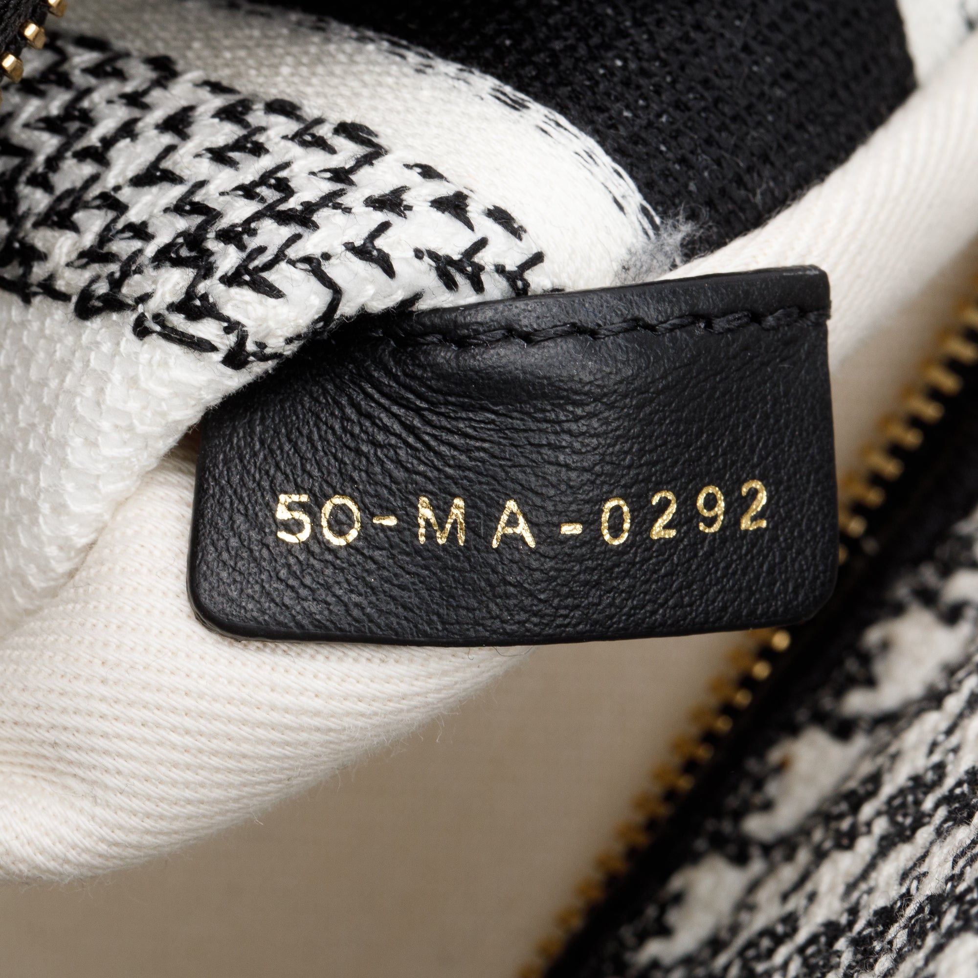 2022 Black/White Houndstooth Embroidered Medium Lady D-Lite Bag w/ Strap