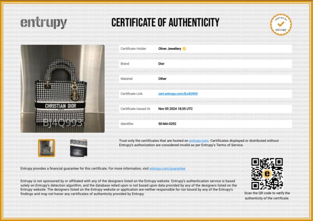 Dust Bag, Detachable Strap, Entrupy Certificate of Authenticity