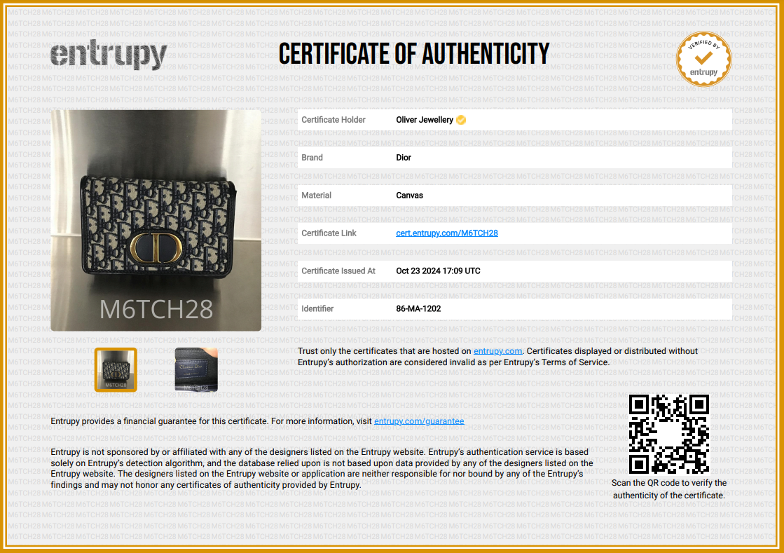 Dust Bag, Straps, Entrupy Certificate of Authenticity