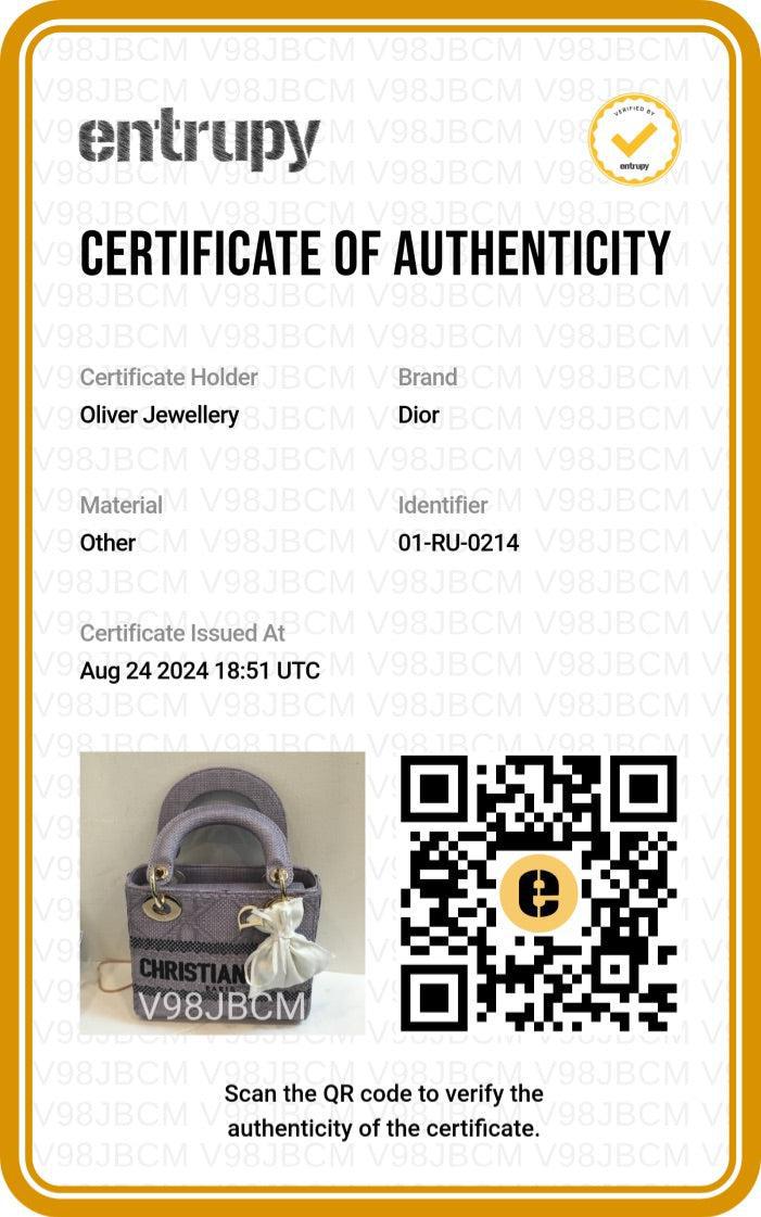 2024 Purple Cannage Raffia Mini Lady D-Lite Bag w/ Strap, Box & Authenticity Card