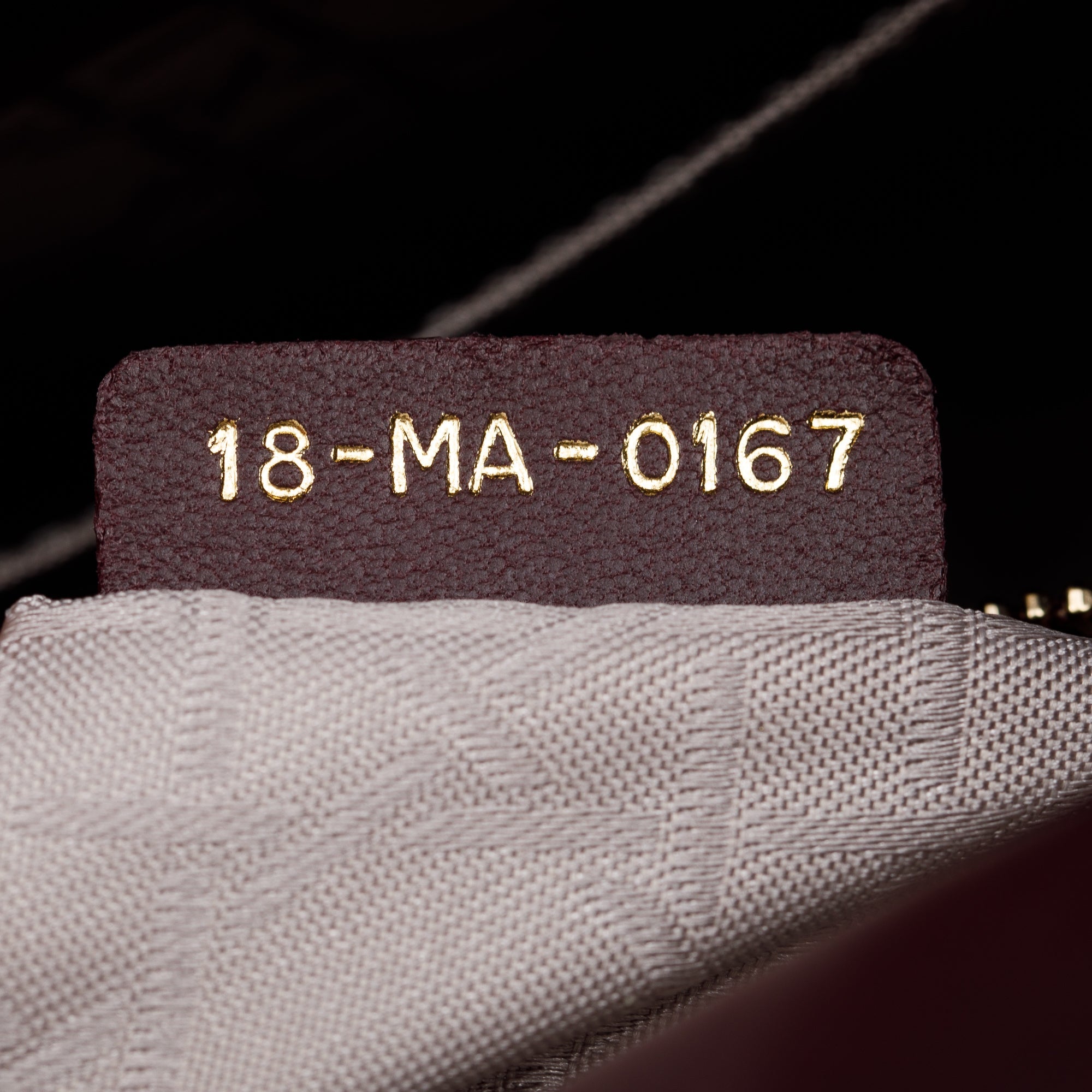 Burgundy Cannage Leather Small Lady Dior Bag w/ Strap, Box & Authenticity Card
