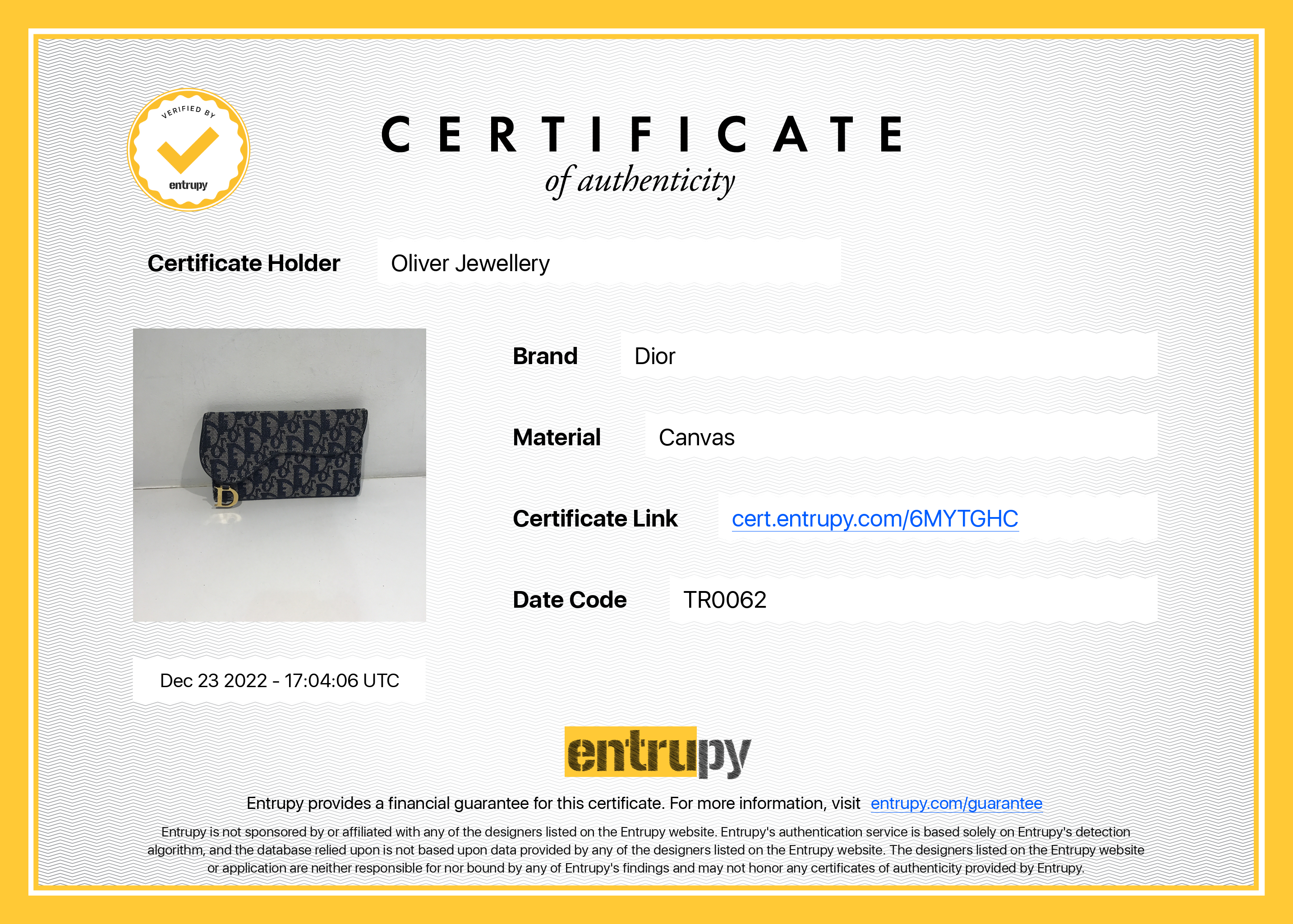 Included Items: Entrupy Certificate of Authenticity #: 6MYTGHC
