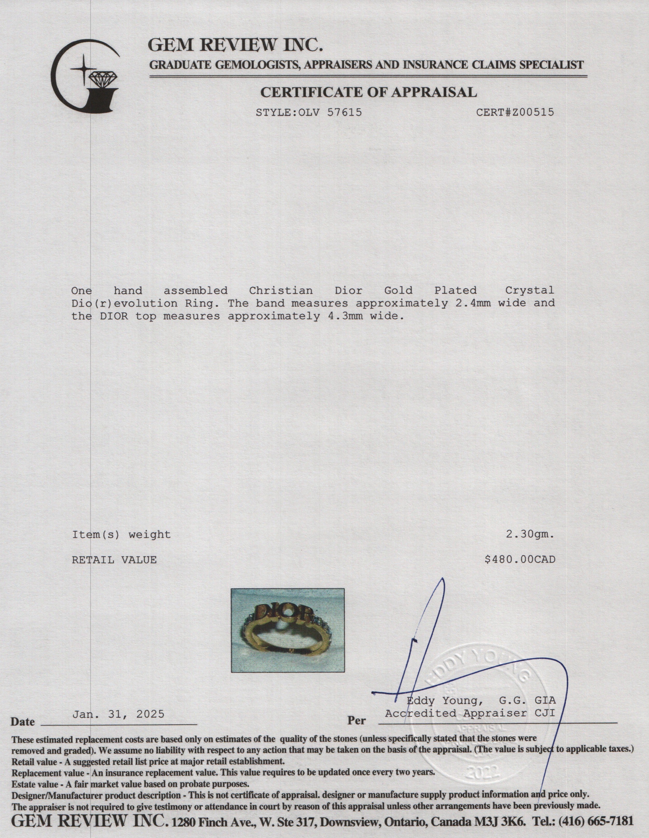Gold Plated Crystal Dio(r)evolution Ring, Size 6 w/ Box