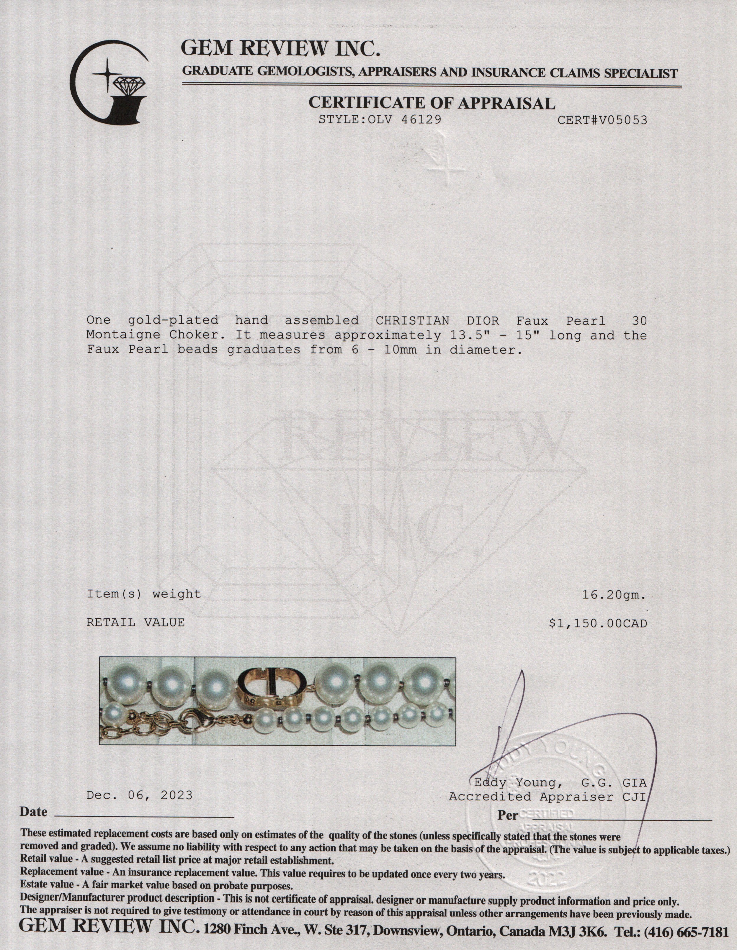 Gold Plated Faux Pearl 30 Montaigne Choker Necklace