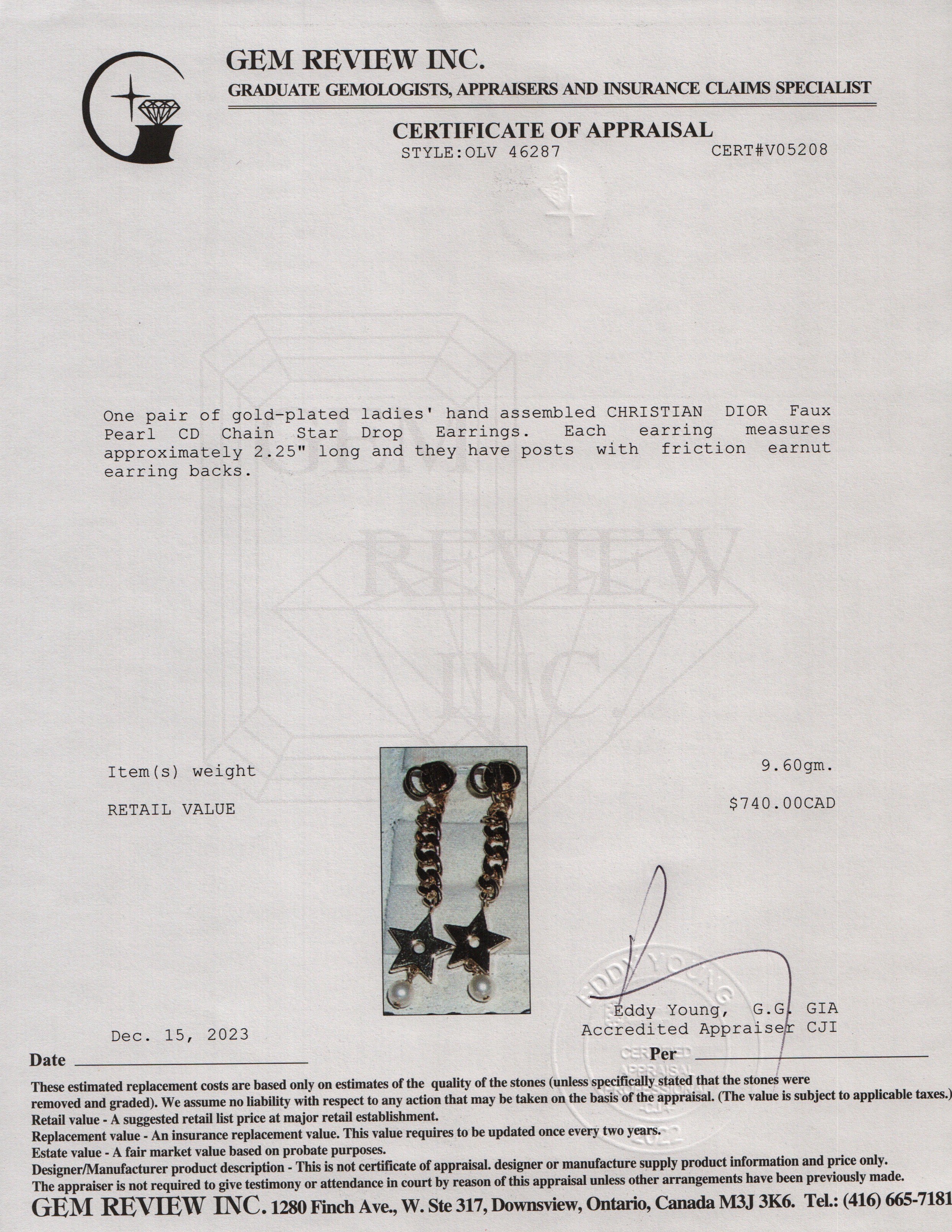 Gold Plated Faux Pearl CD Chain Star Drop Earrings