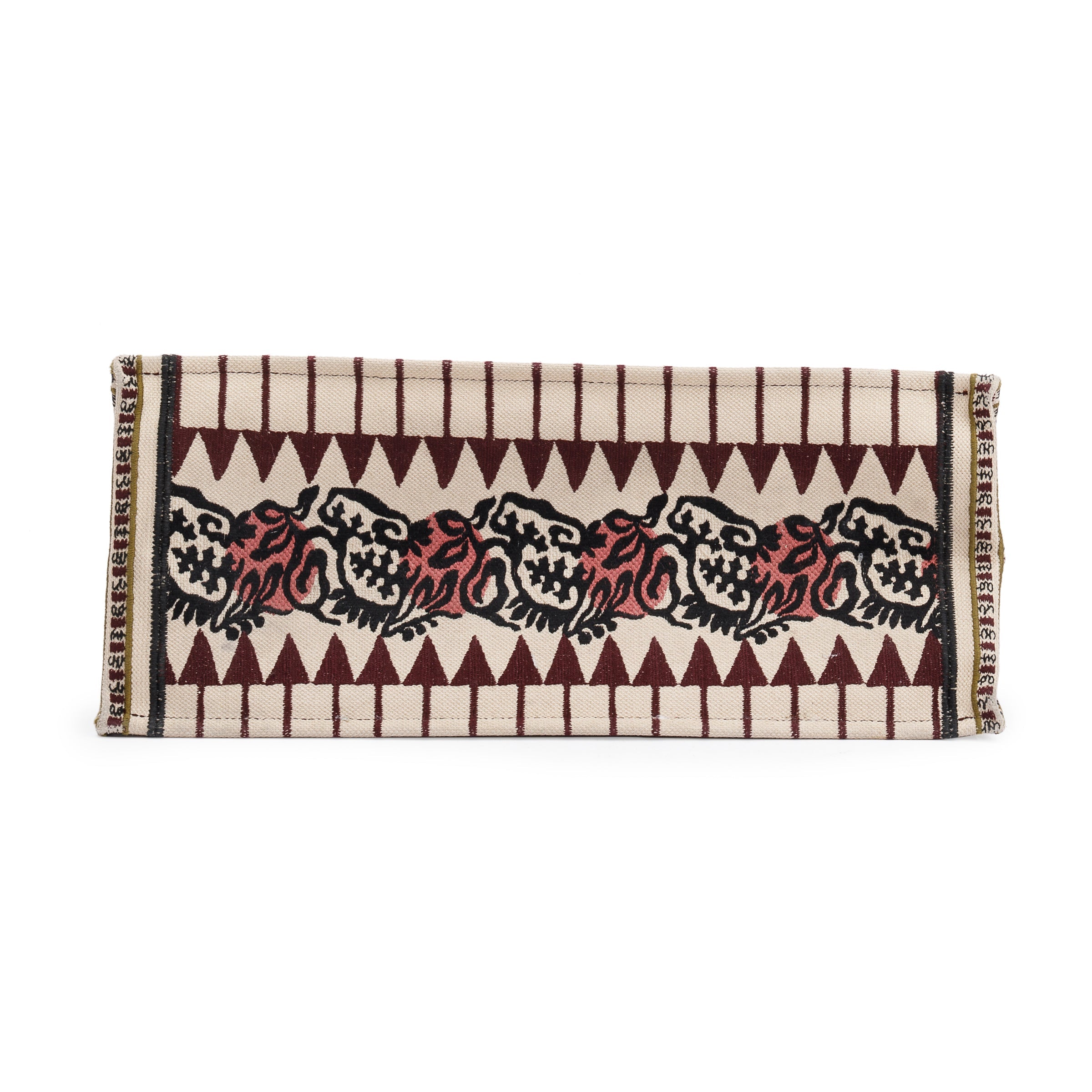 Large Multicolor Embroidered Geometric Canvas Book Tote w/ Box