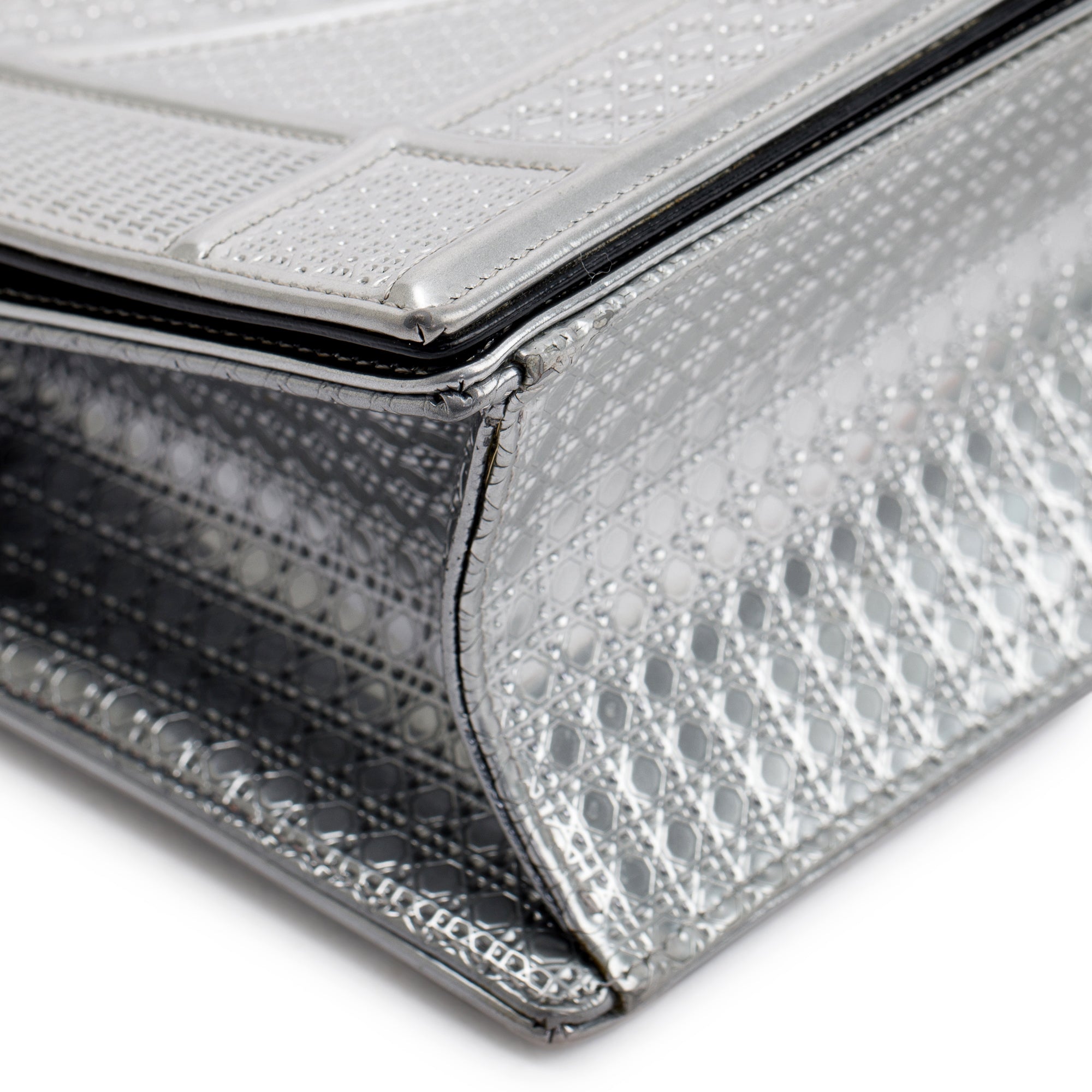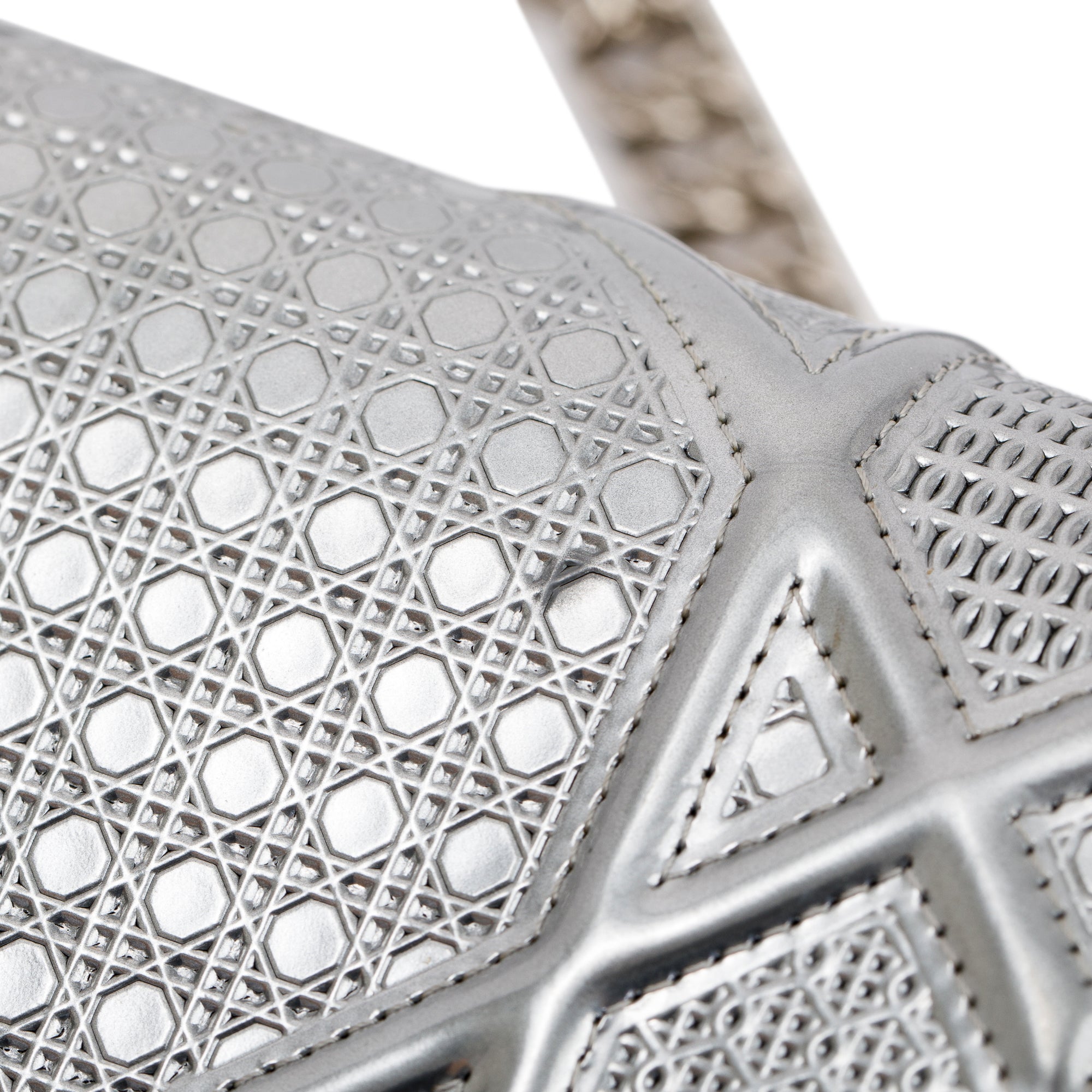 Large Silver Metallic Microcannage Diorama Shoulder Bag w/ Box
