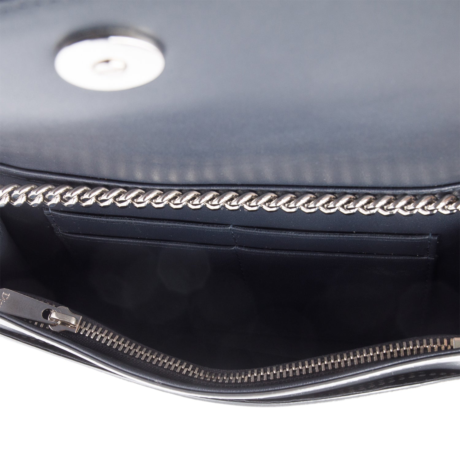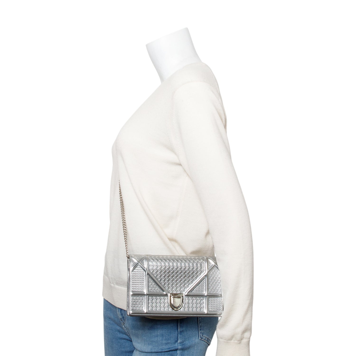 Metallic Silver Microcannage Patent Leather Diorama Wallet on Chain w/ Box & Authenticity Card
