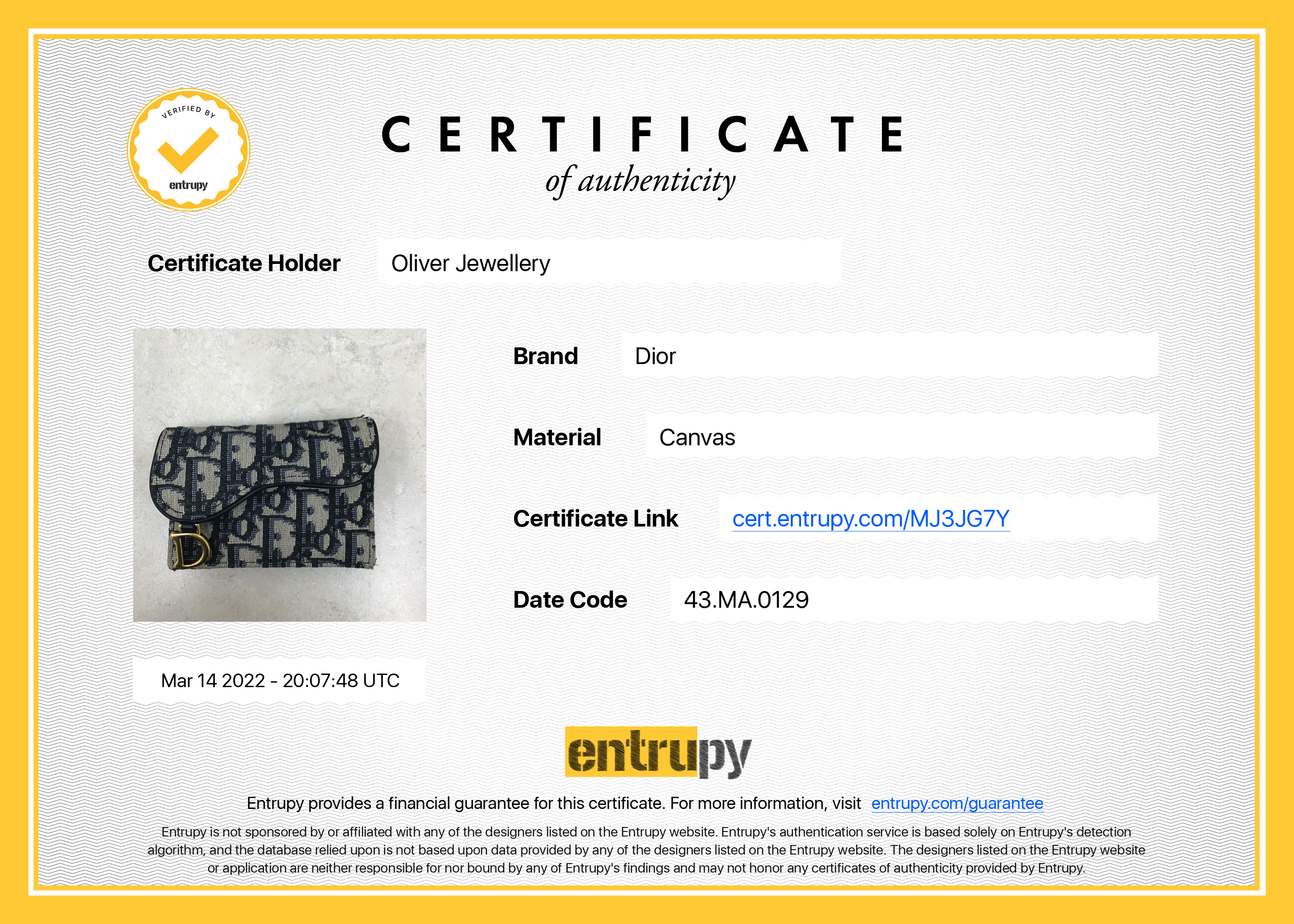 Included Items: Entrupy Certificate of Authenticity #: MJ3JG7Y