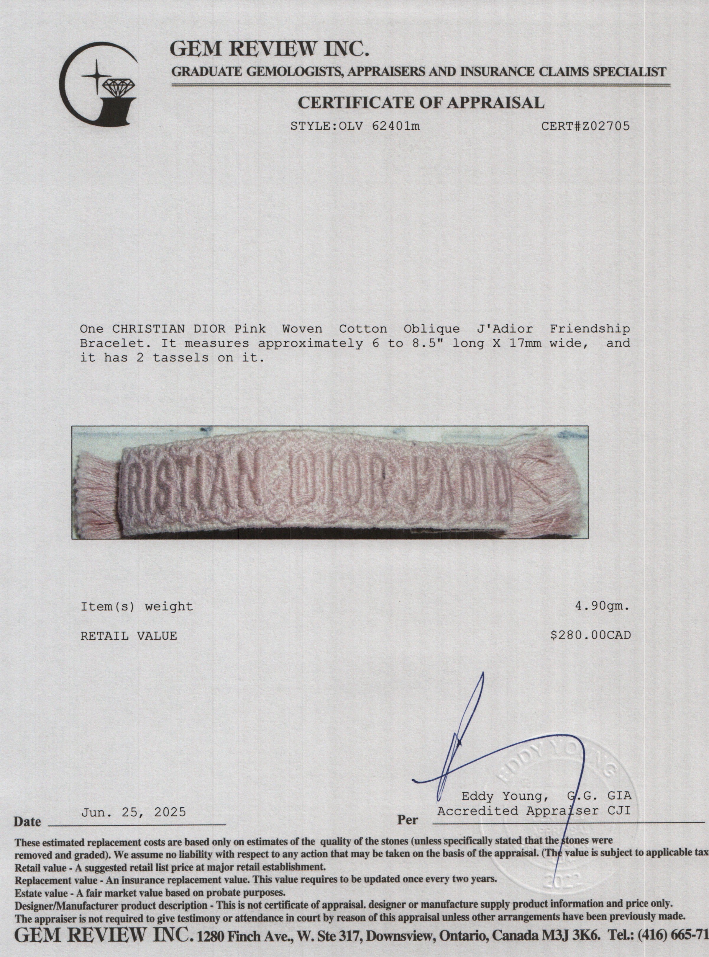 Pink Woven Cotton Oblique J'Adior Friendship Bracelet