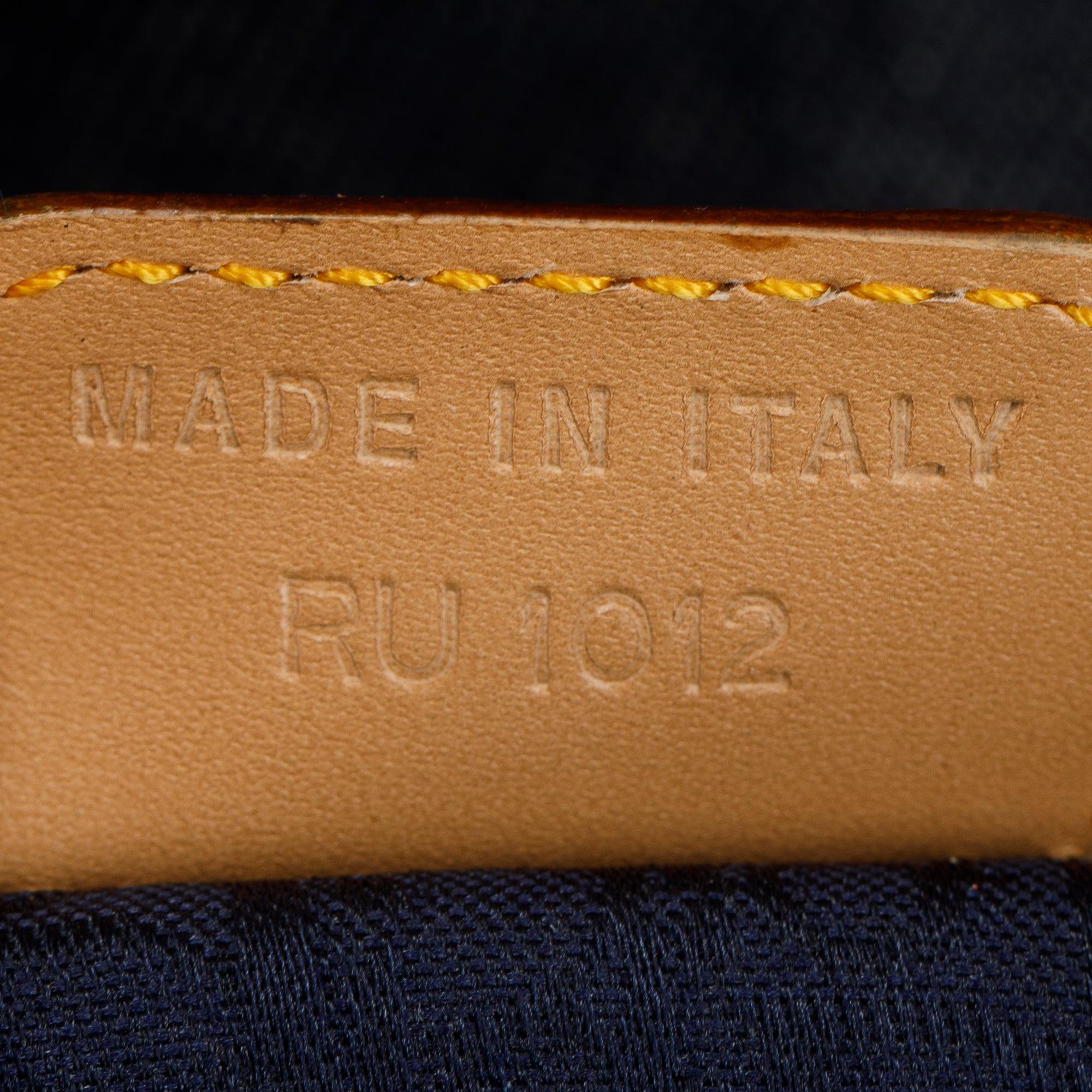 Condition: Very Good; slight surface scratches at hardware; minor marks and creasing at exterior leather; clean interior