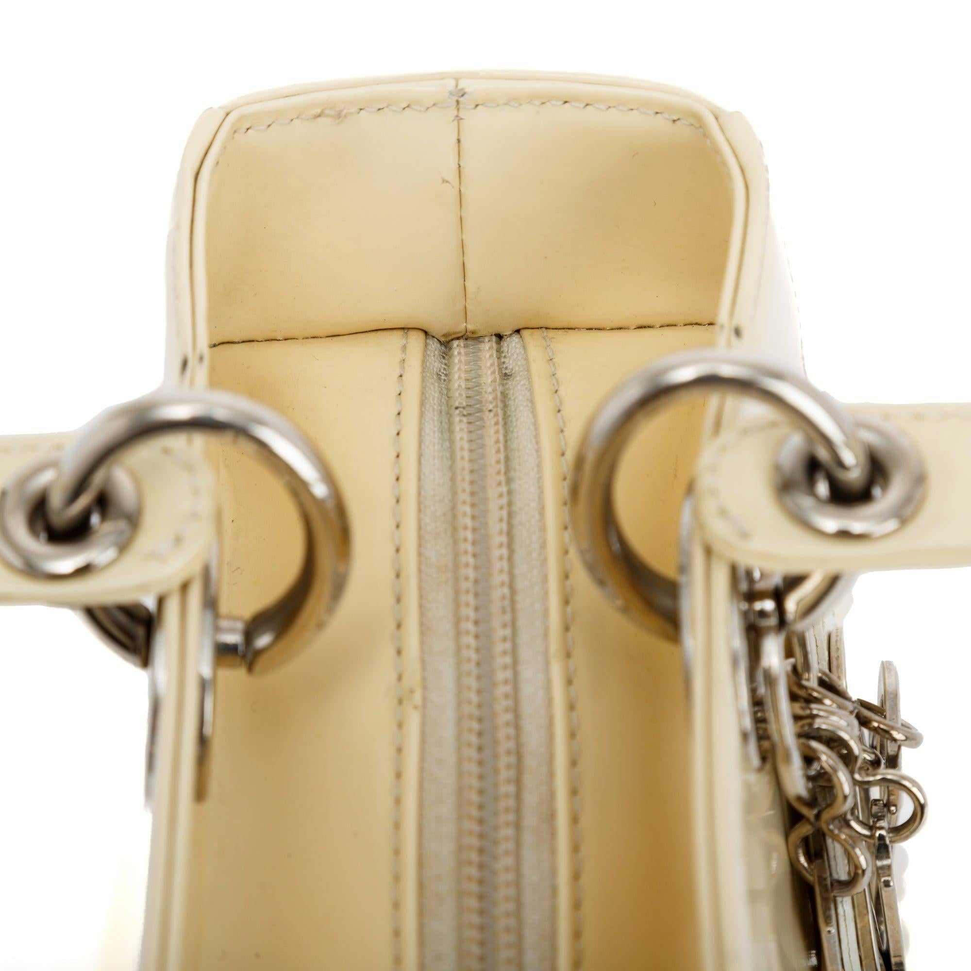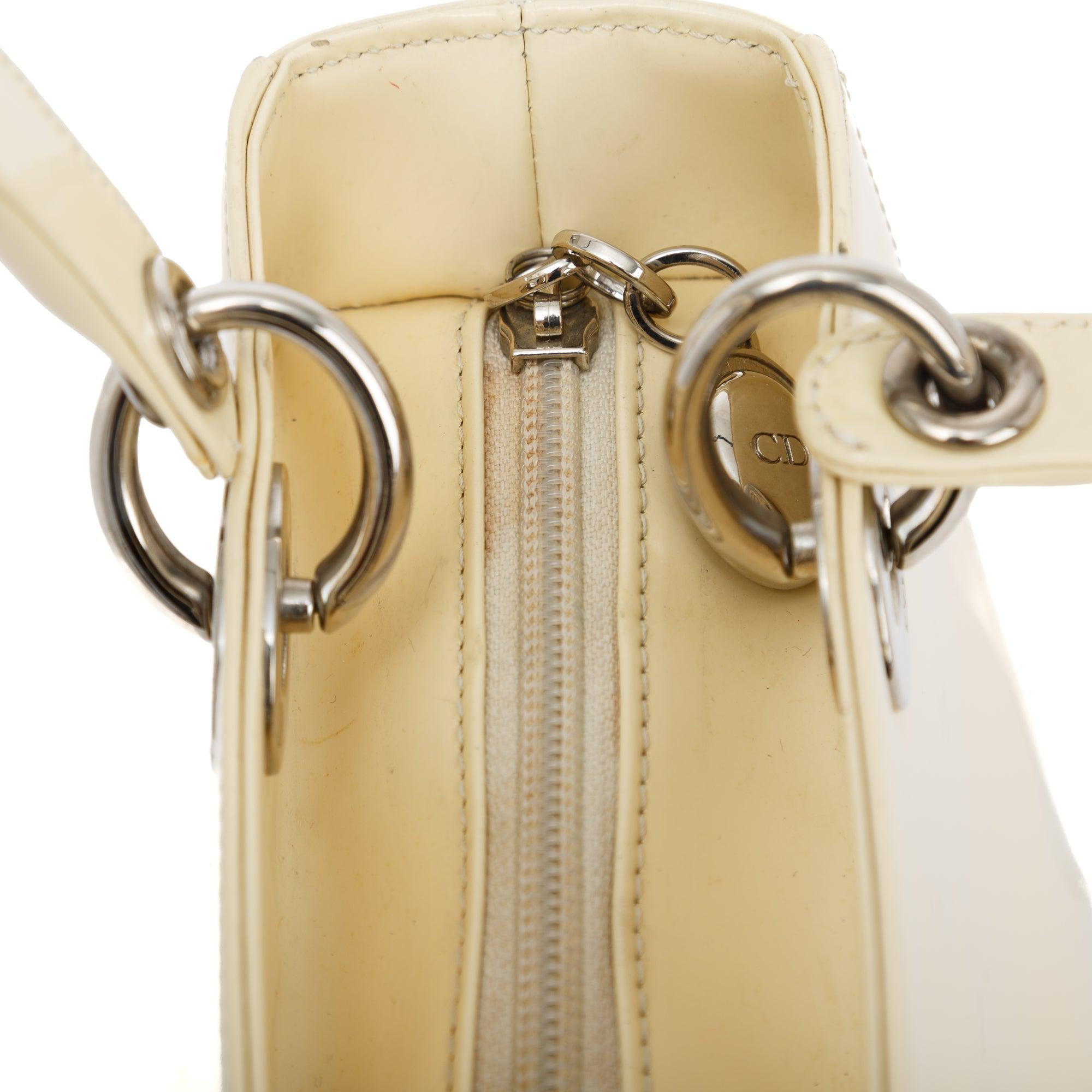 Vintage White Patent Leather Medium Lady Dior Bag w/ Strap