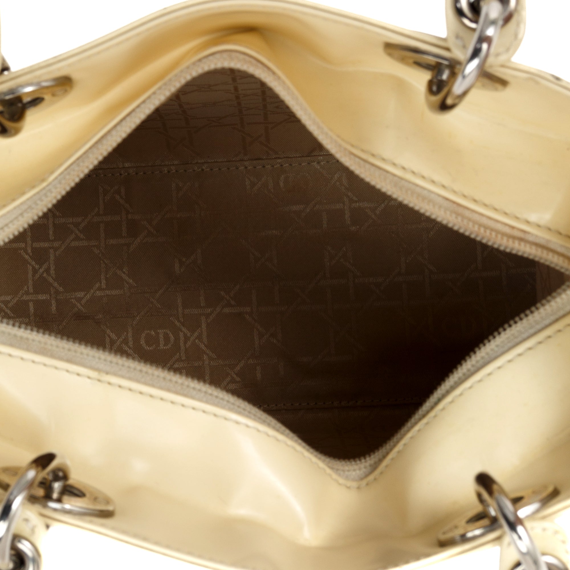 Christian Dior Vintage White Patent Leather Medium Lady Dior Bag