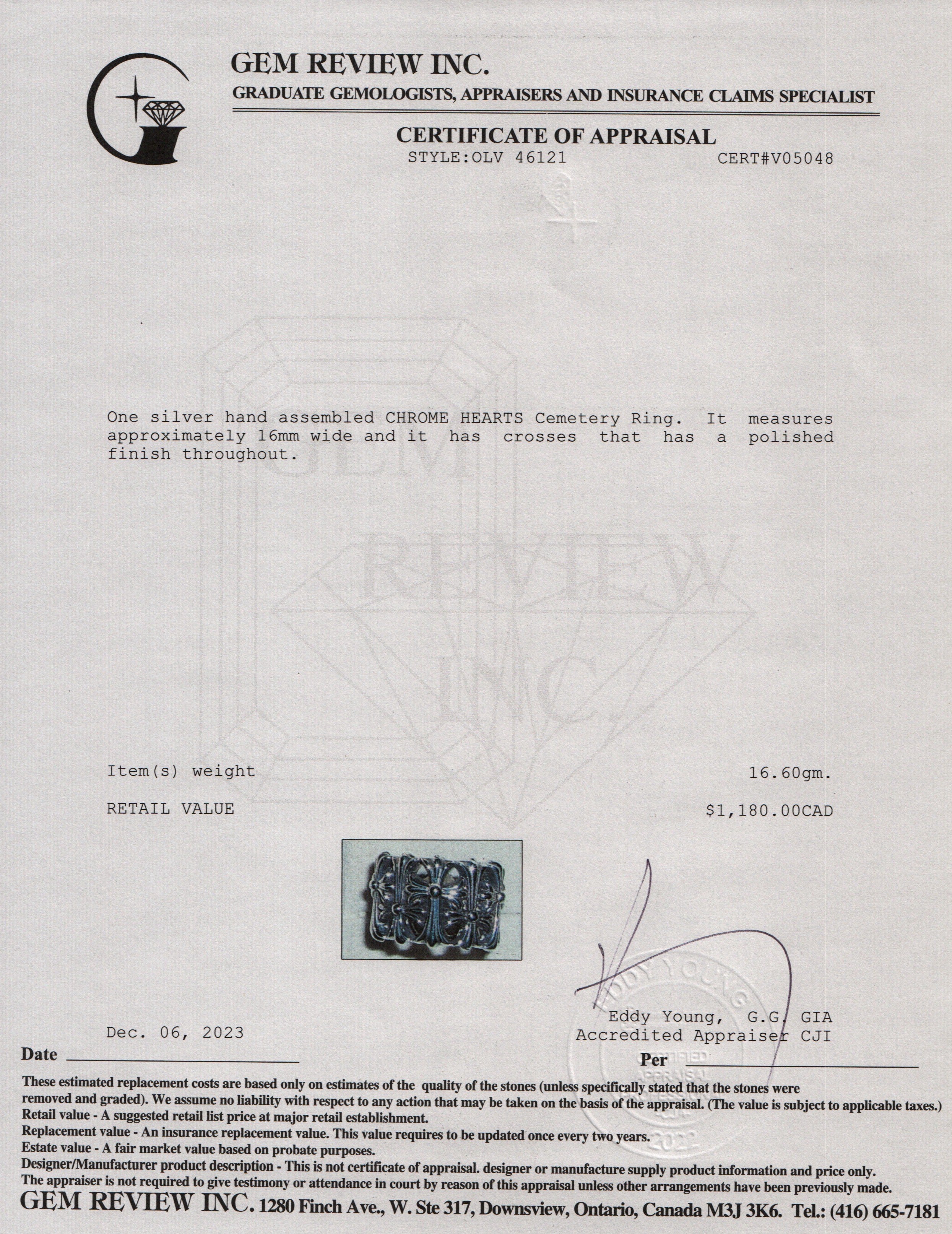 Sterling Silver Cemetery Wide 16 MM Band Ring, Size 7.5