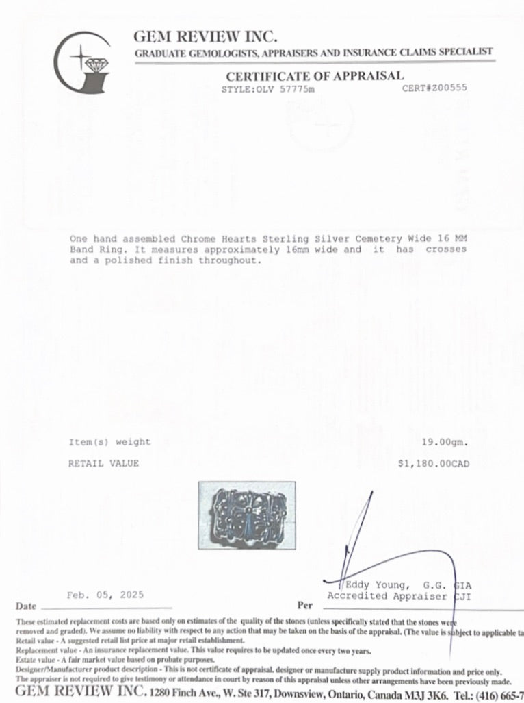 Sterling Silver Cemetery Wide 16 MM Band Ring, Size 8
