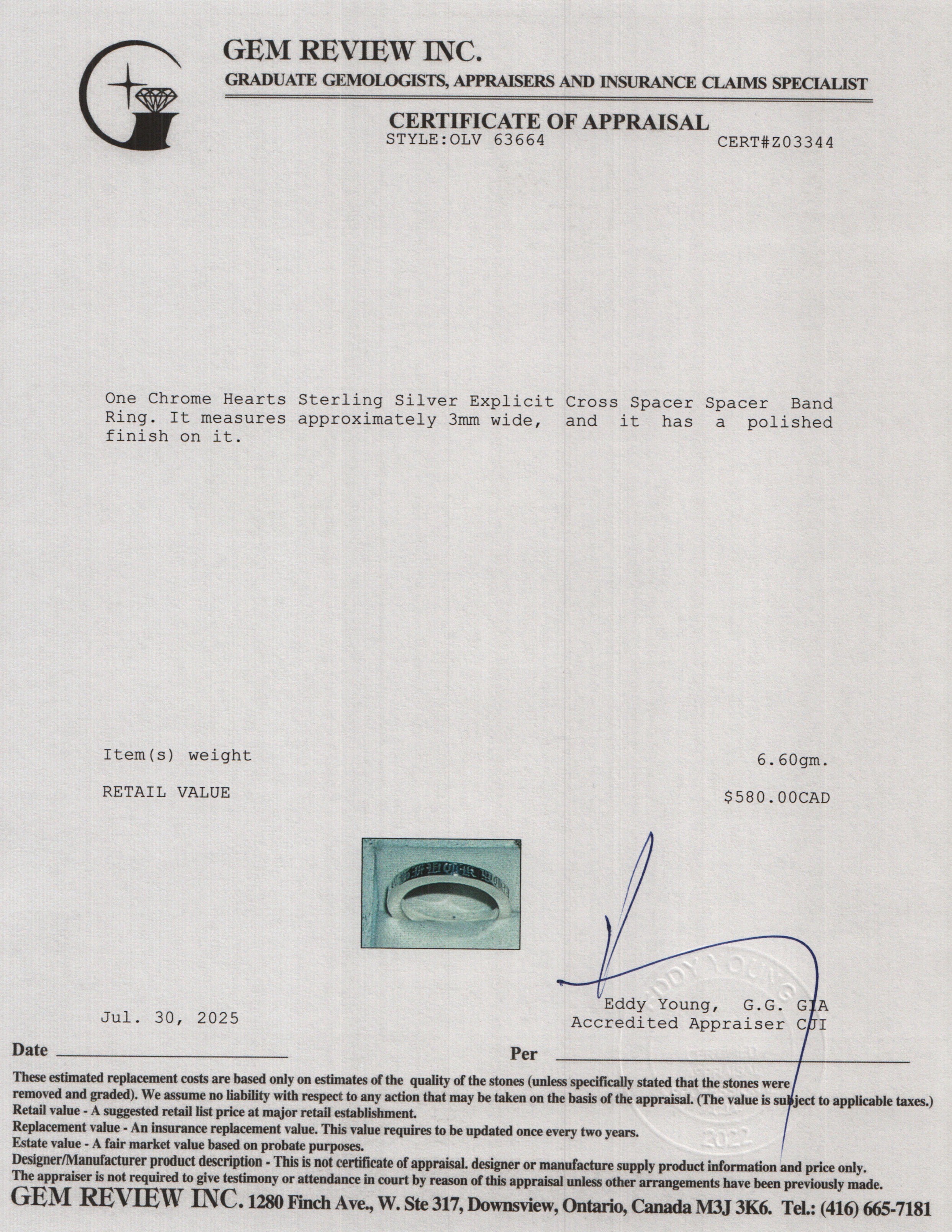 Sterling Silver Explicit Cross Spacer Spacer Band Ring, Size 9.5
