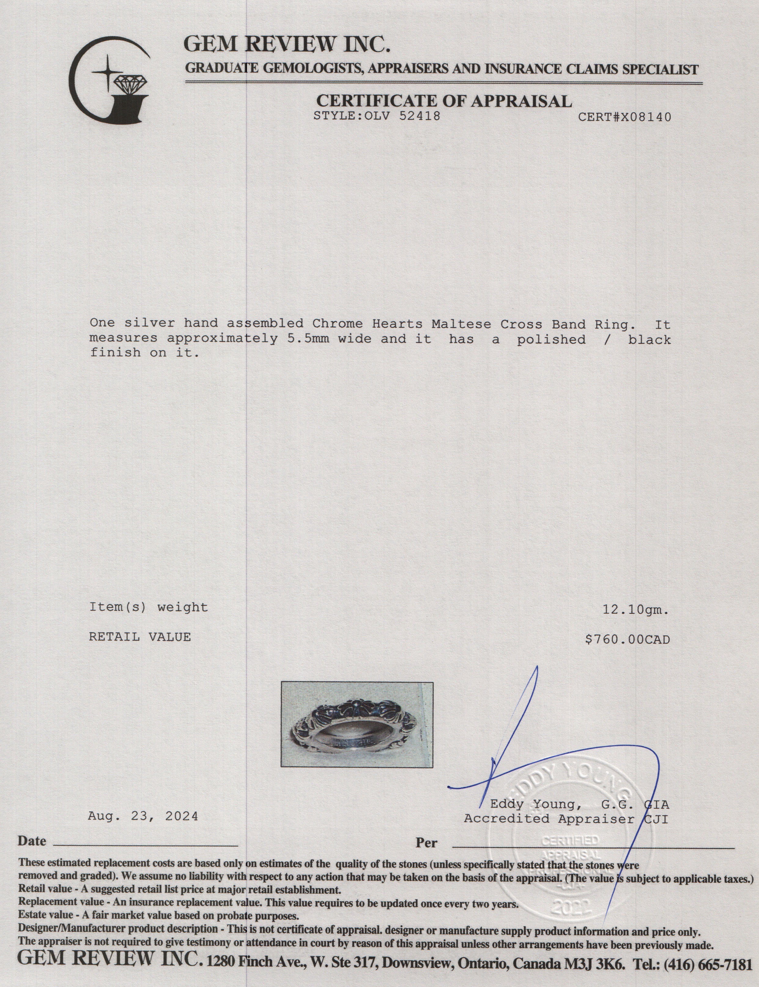 Sterling Silver Maltese Cross Band Ring, Size 7