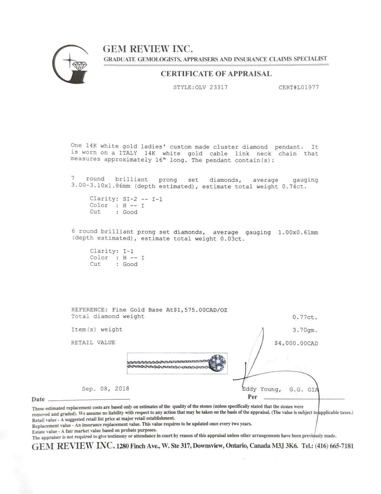 - 7 Round Brilliant Cut Diamonds Totalling Approximately 0.74 ct. of SI2-I1 Clarity, H-I Colour, Good Cut
