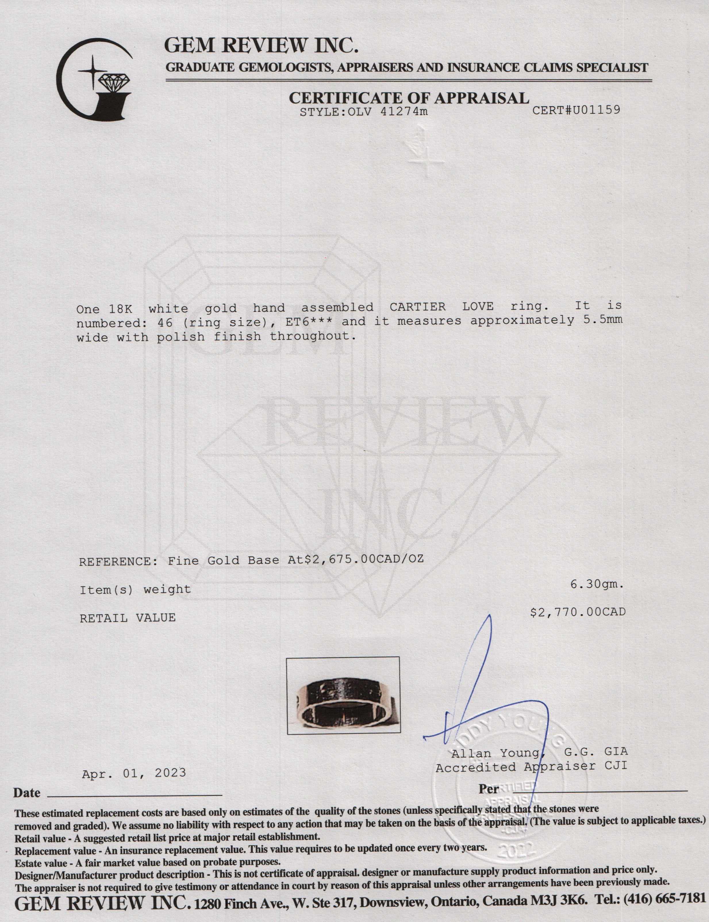 Included Items: Original Cross Box and Gem Review Appraisal