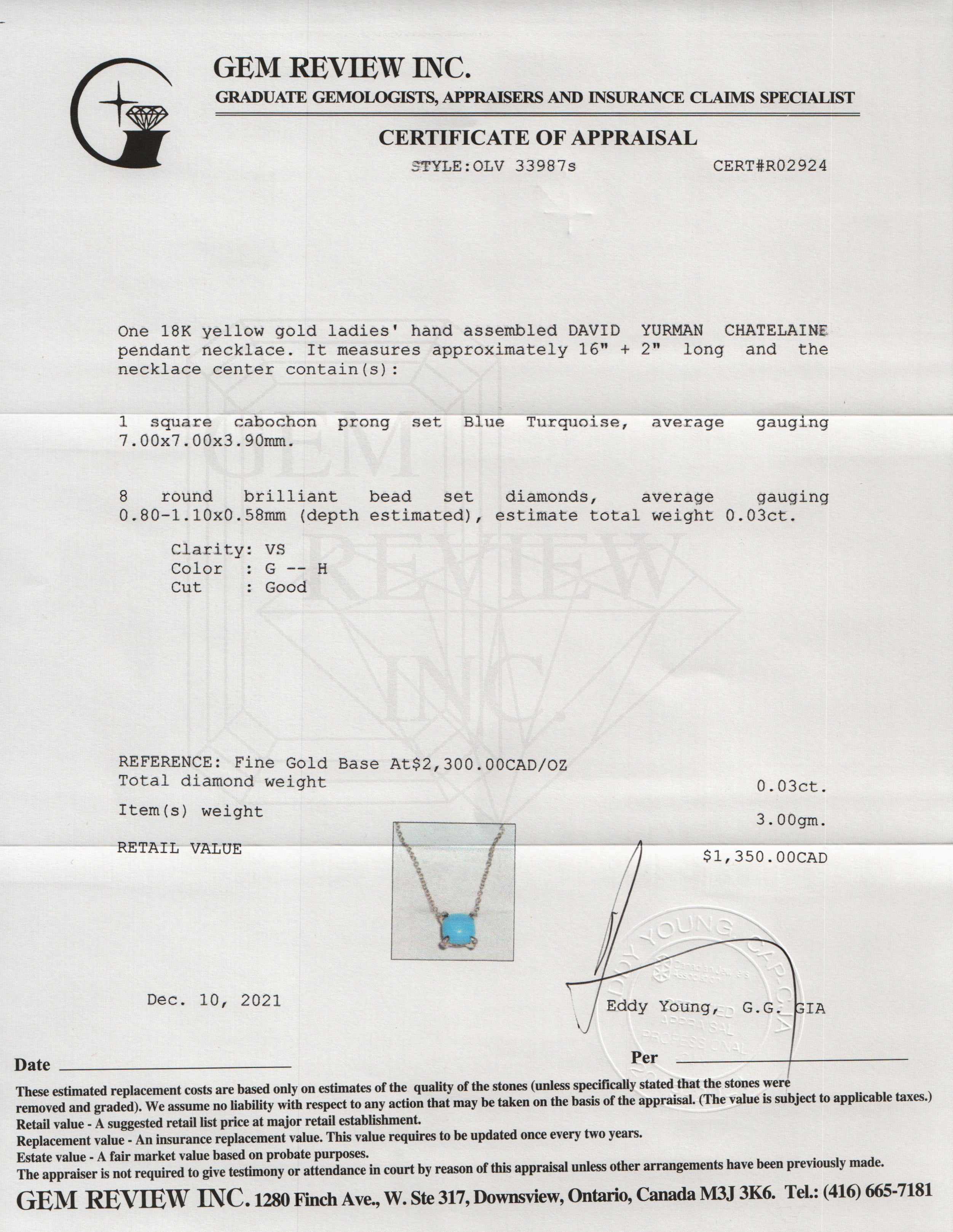 Included Items: Original David Yurman Box & Gem Review Appraisal