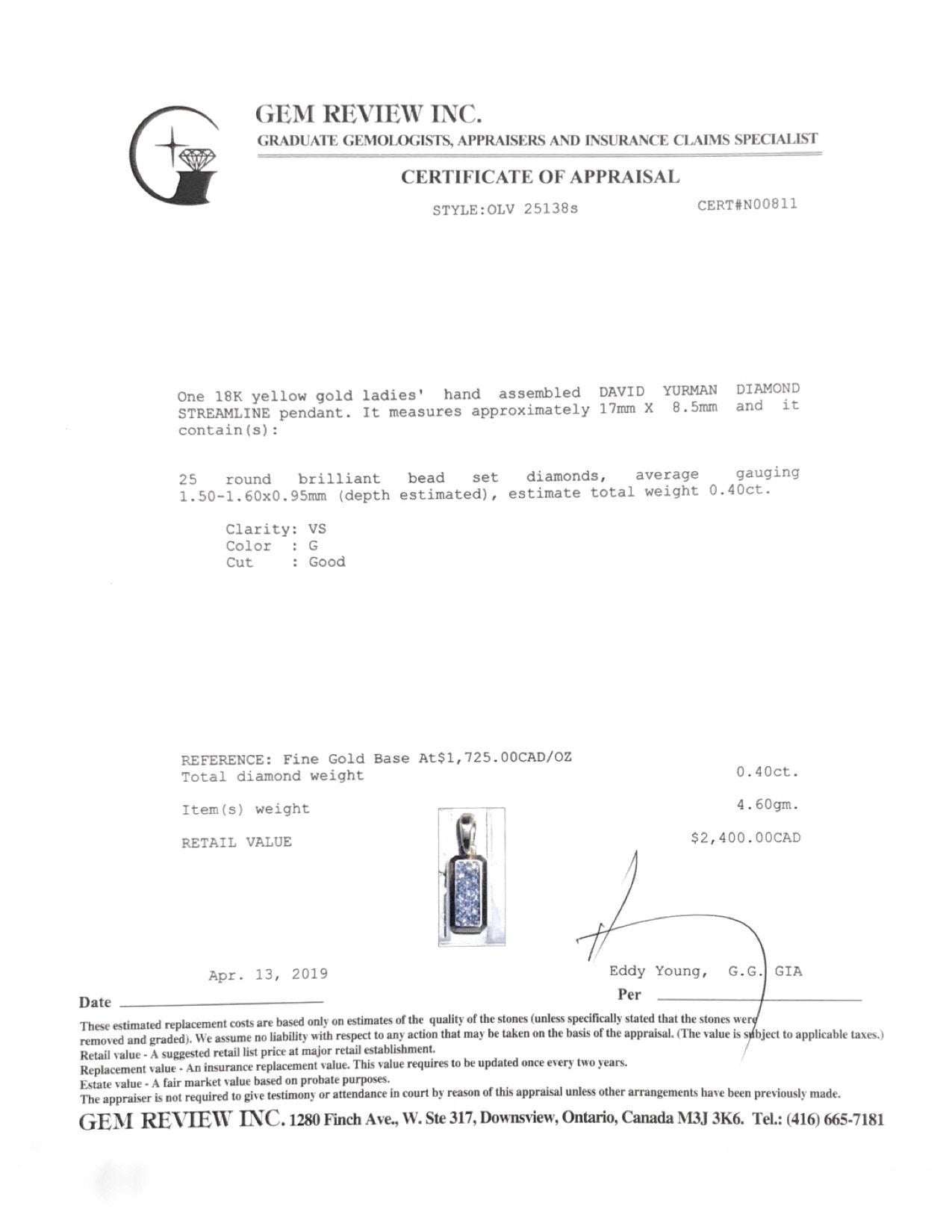 David Yurman 18k Gold Diamond Streamline Amulet Pendant