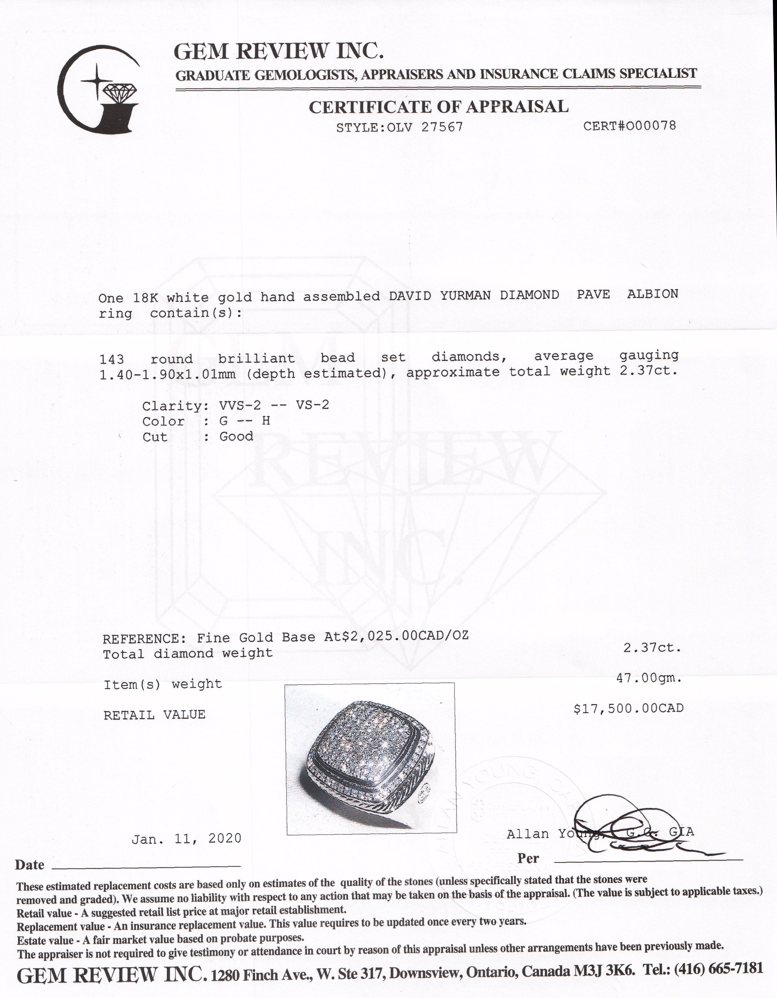 David Yurman 18k White Gold Pave Diamond Albion Ring