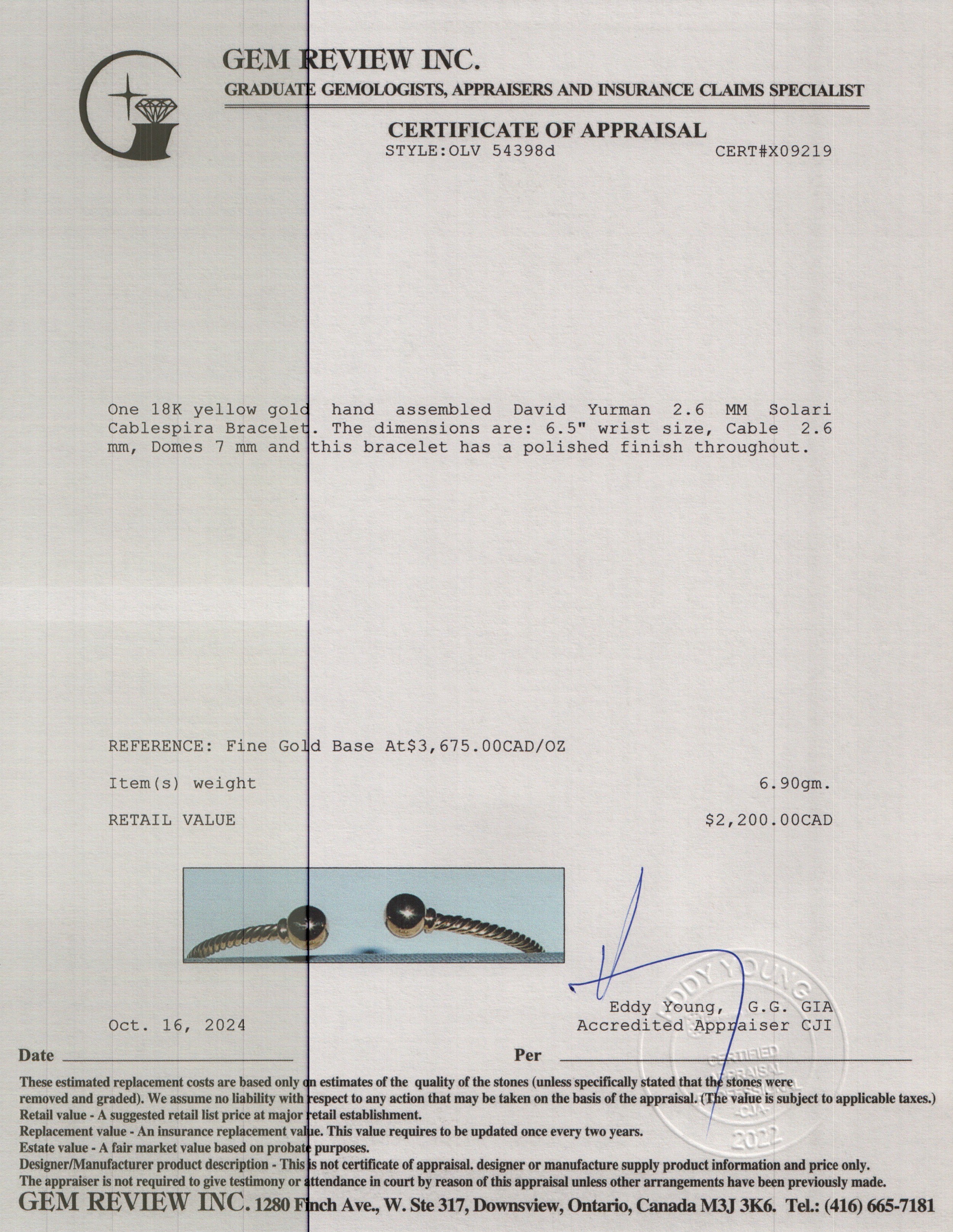 18k Yellow Gold 2.6 MM Solari Cablespira Bracelet