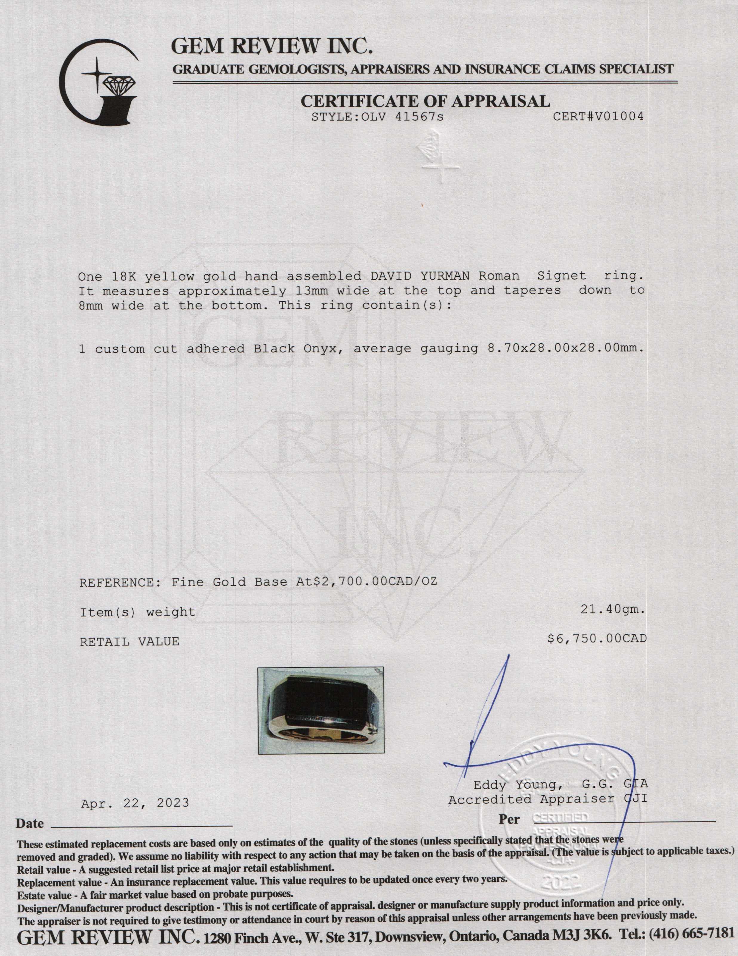David Yurman 18k Yellow Gold & Black Onyx Roman Signet Ring