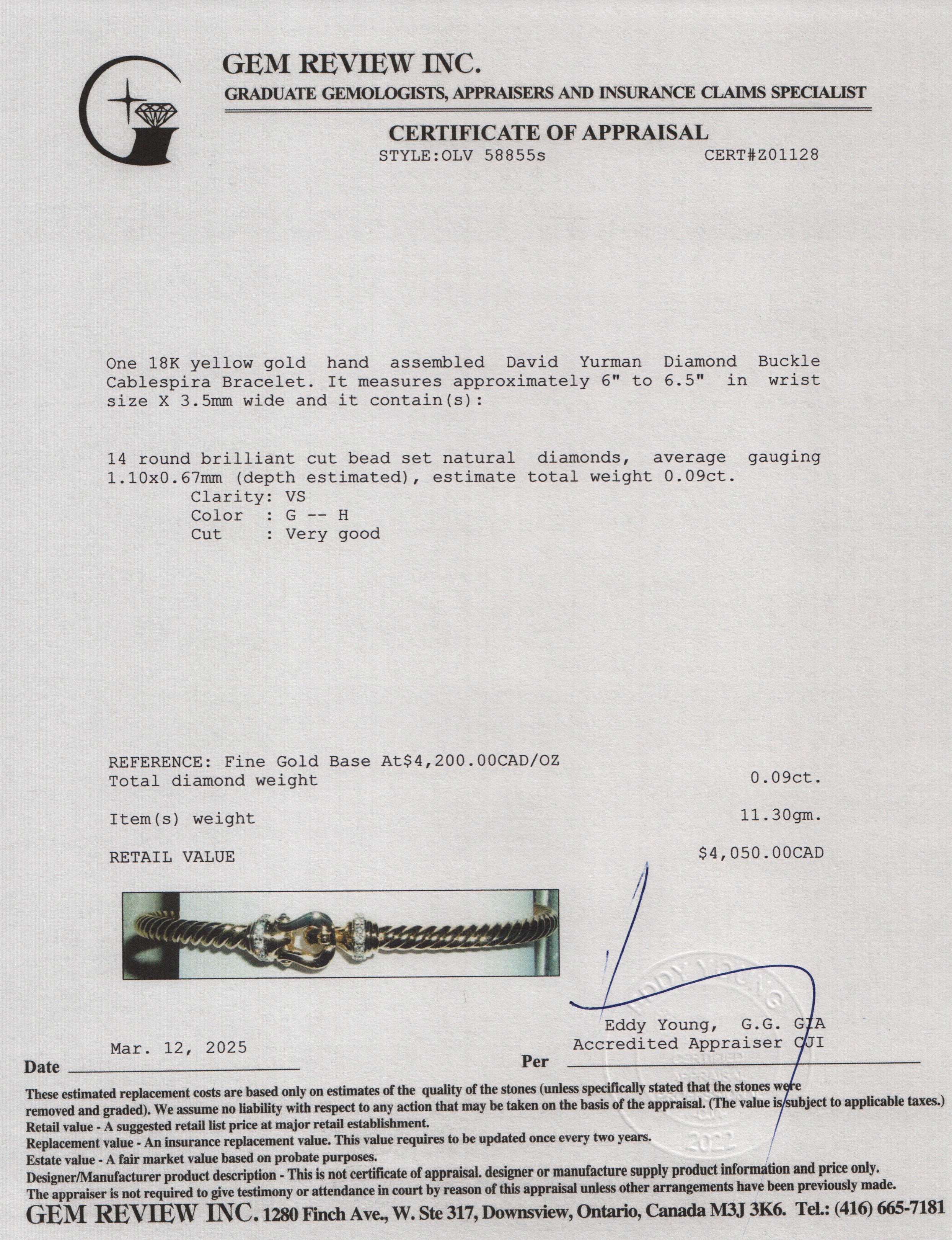 18k Yellow Gold Diamond Buckle Cablespira 3.5 MM Bracelet