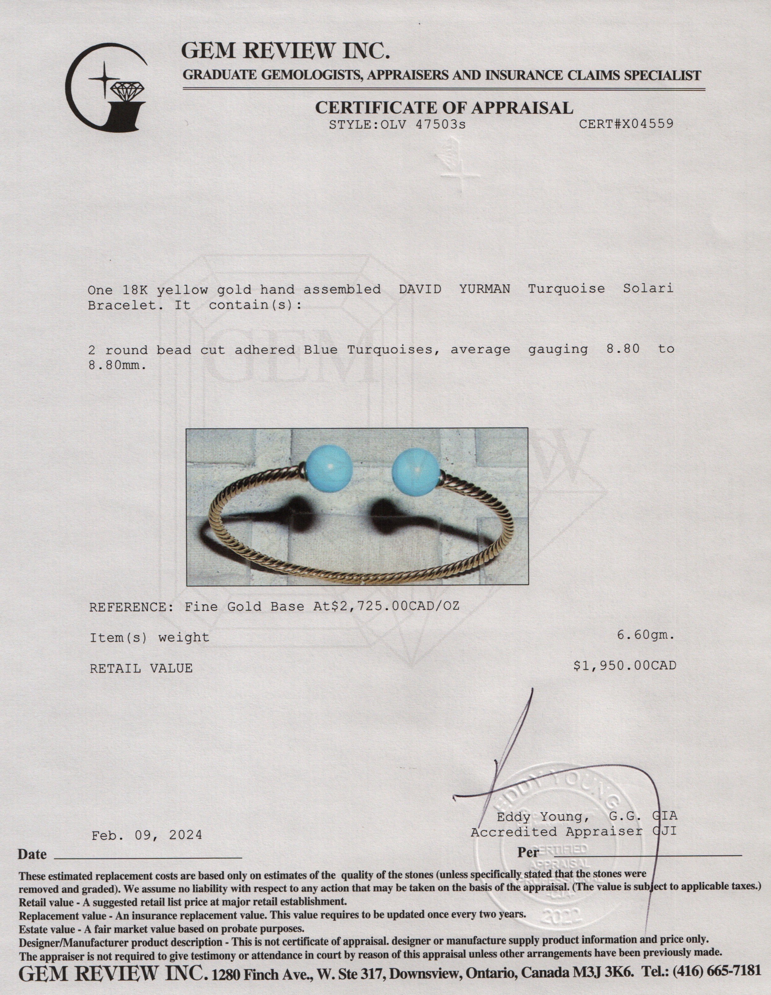 18k Yellow Gold Turquoise Solari Bracelet w/ Box