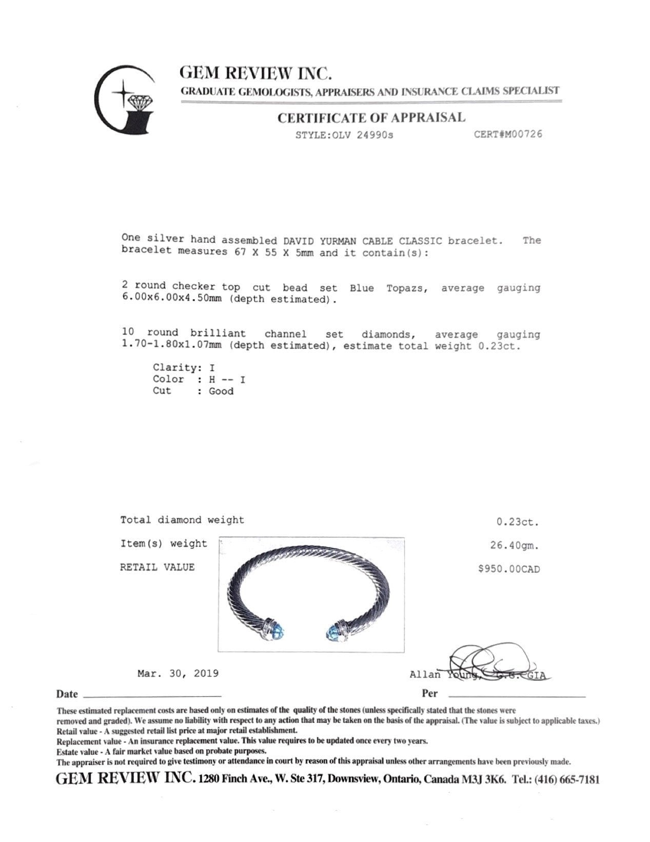 David Yurman 5 mm Cable Classics Bracelet with Blue Topaz & Diamonds