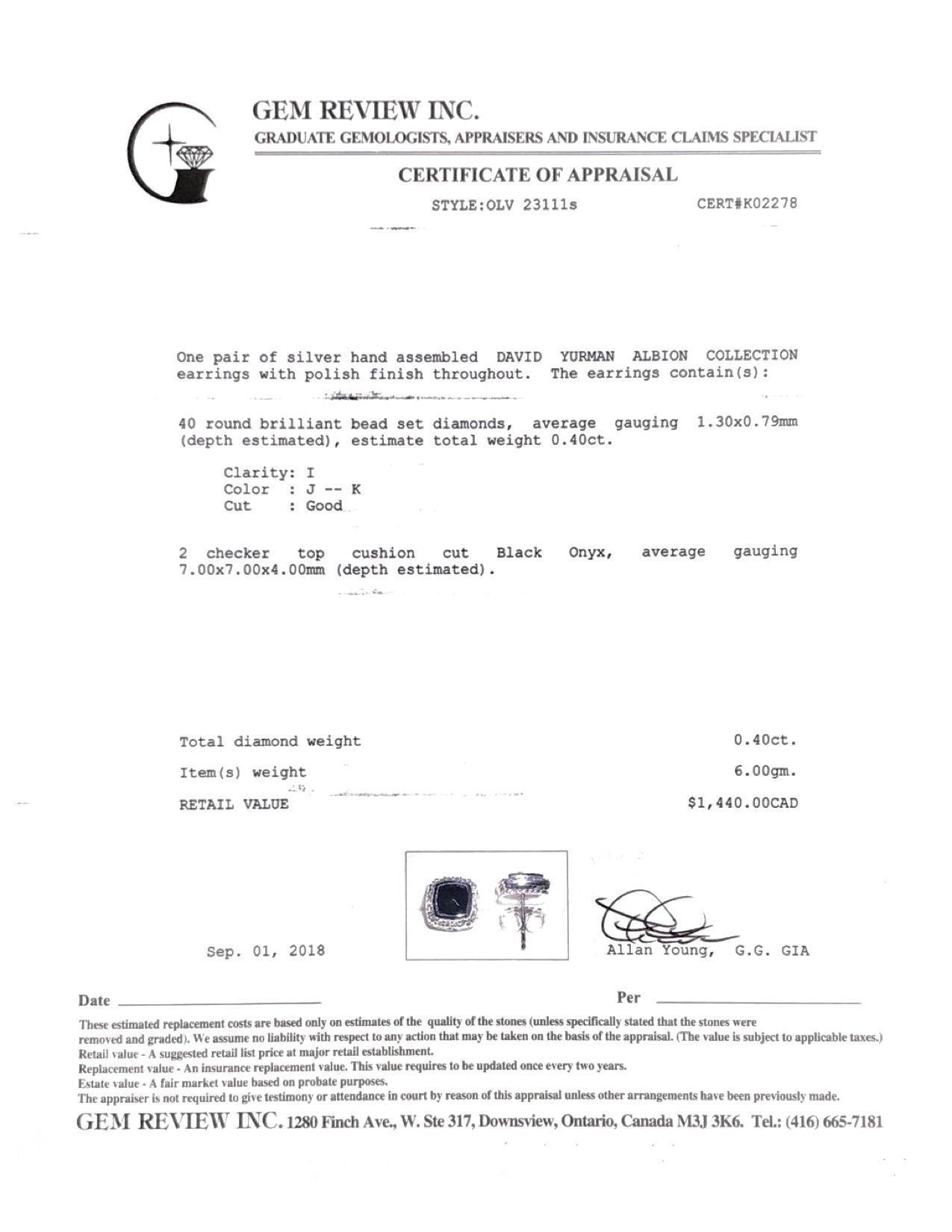 David Yurman Albion Earrings with Black Onyx and Diamonds