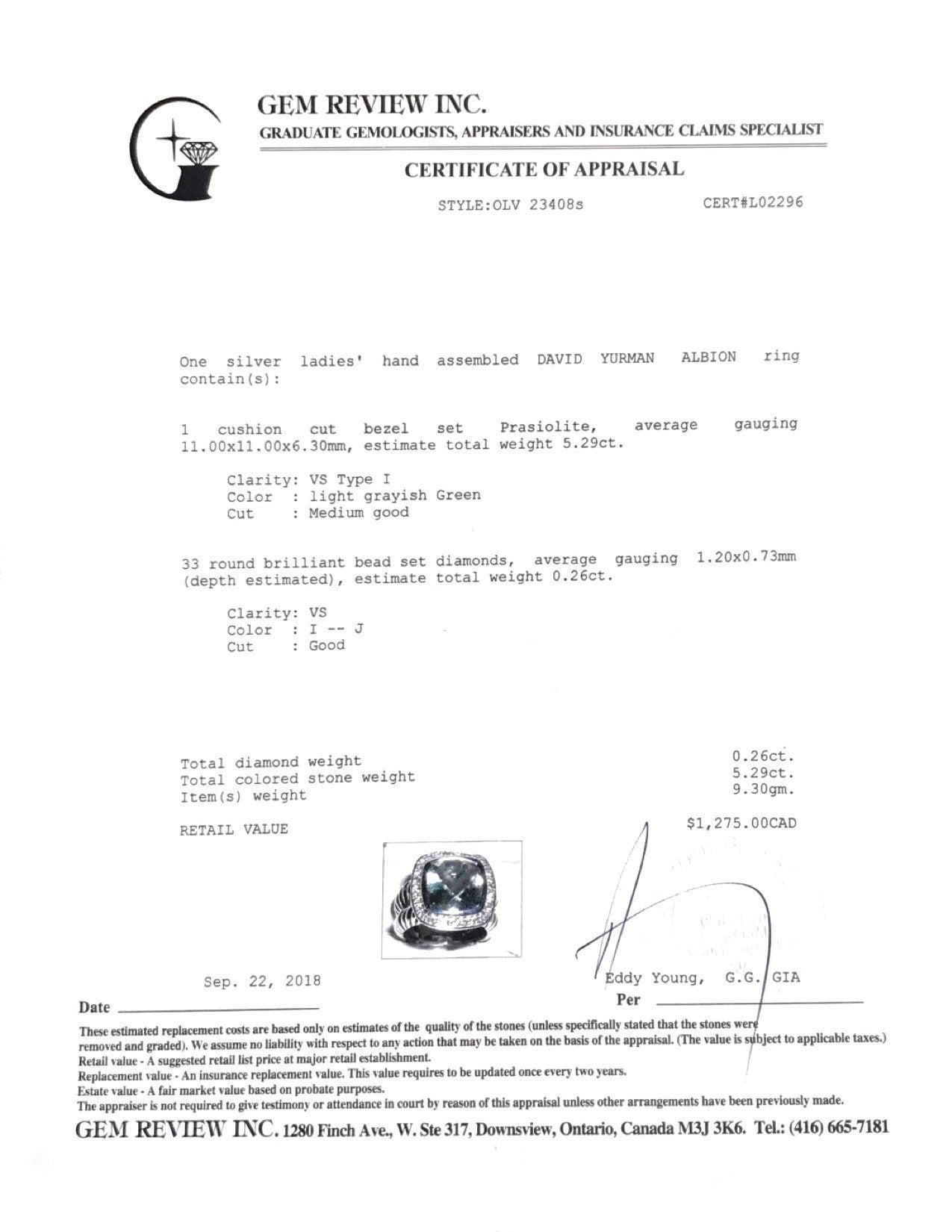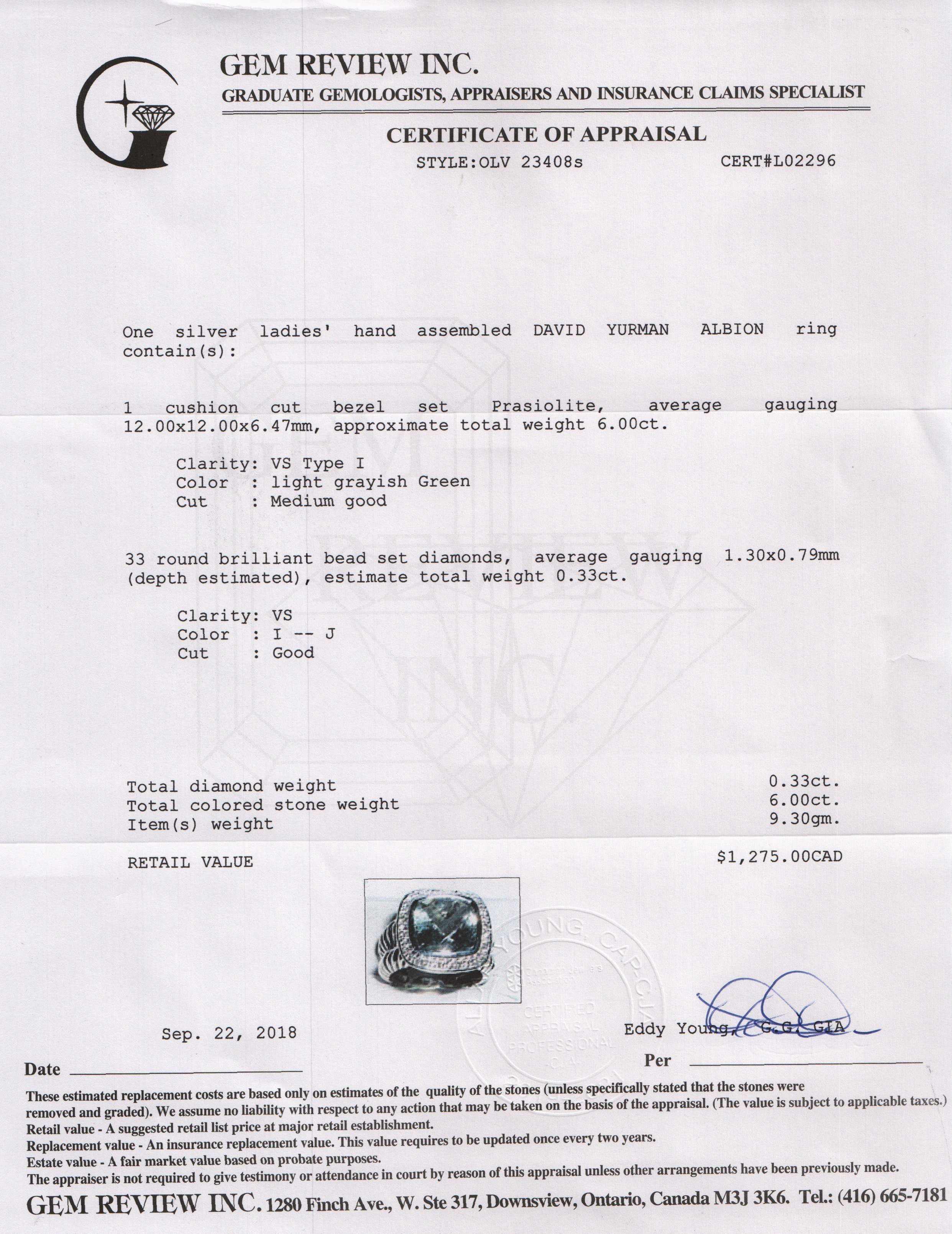 David Yurman Albion Ring with Prasiolite and Diamonds