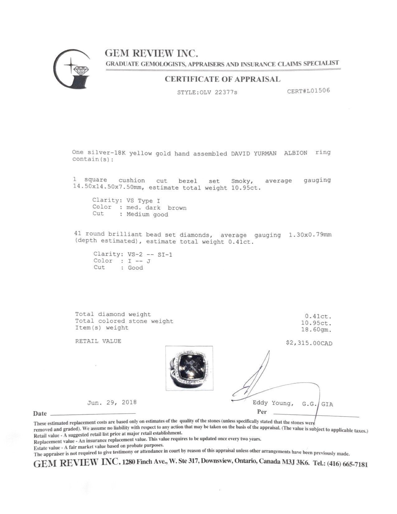 David Yurman Albion Ring with Smoky Quartz and Diamonds