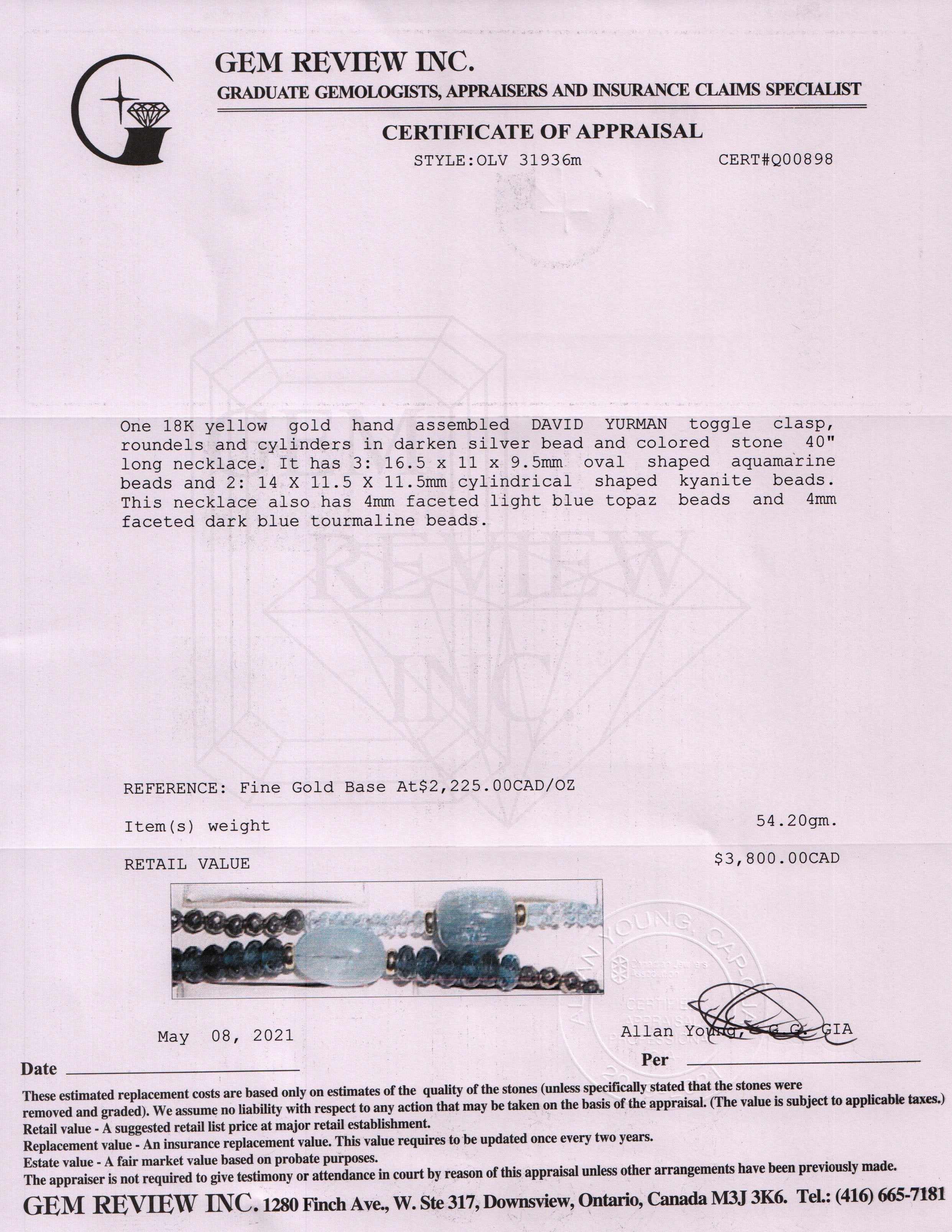 David Yurman Aquamarine, Blue Topaz, and Blue Tourmaline Bead Necklace