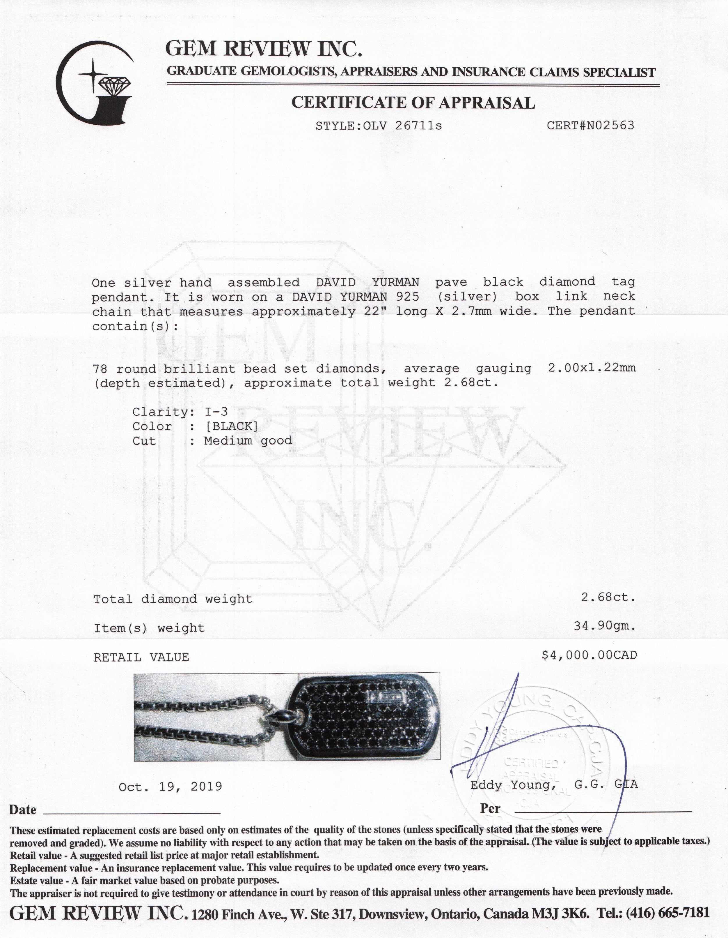 David Yurman Black Diamond Pave Tag Pendant Necklace