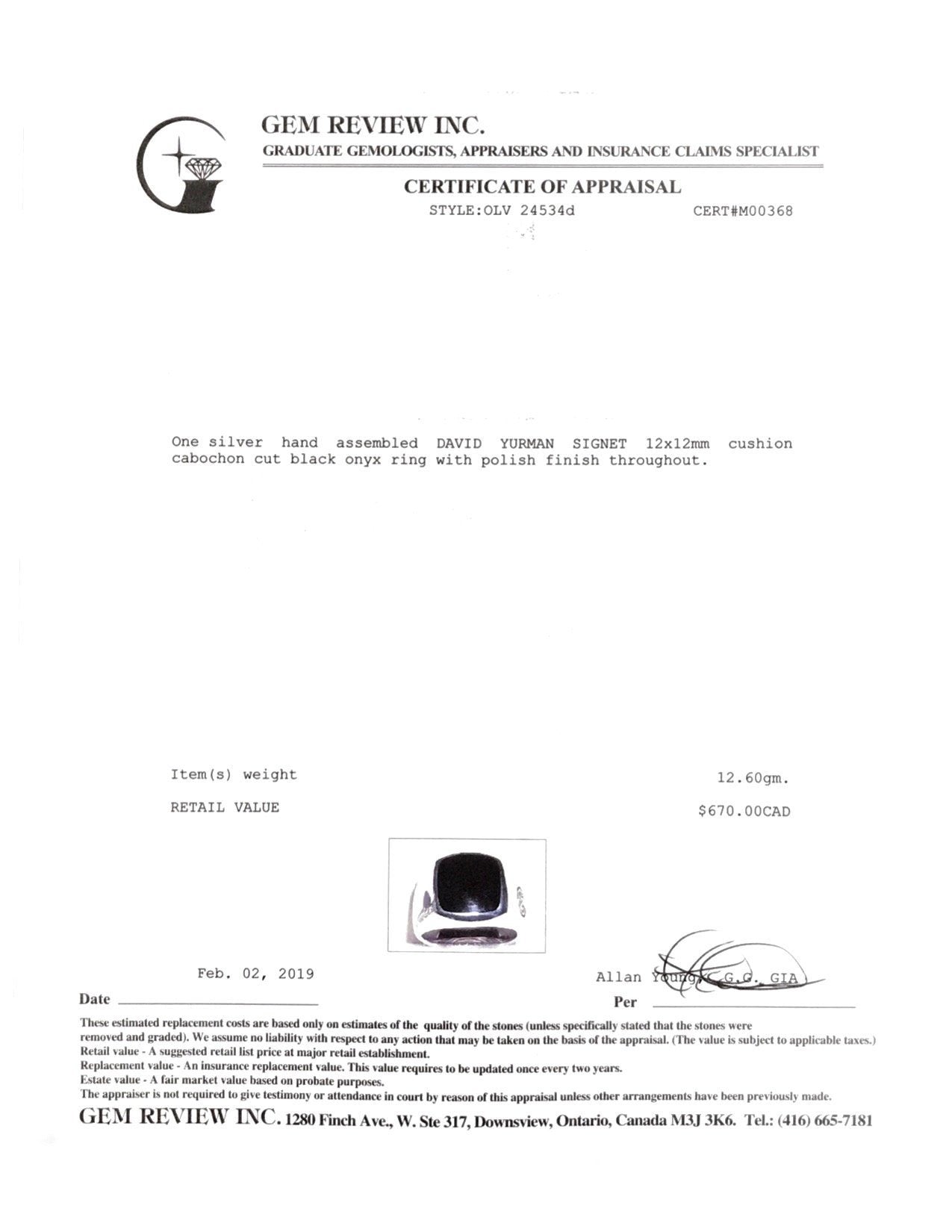 David Yurman Black Onyx Exotic Stone Signet Ring