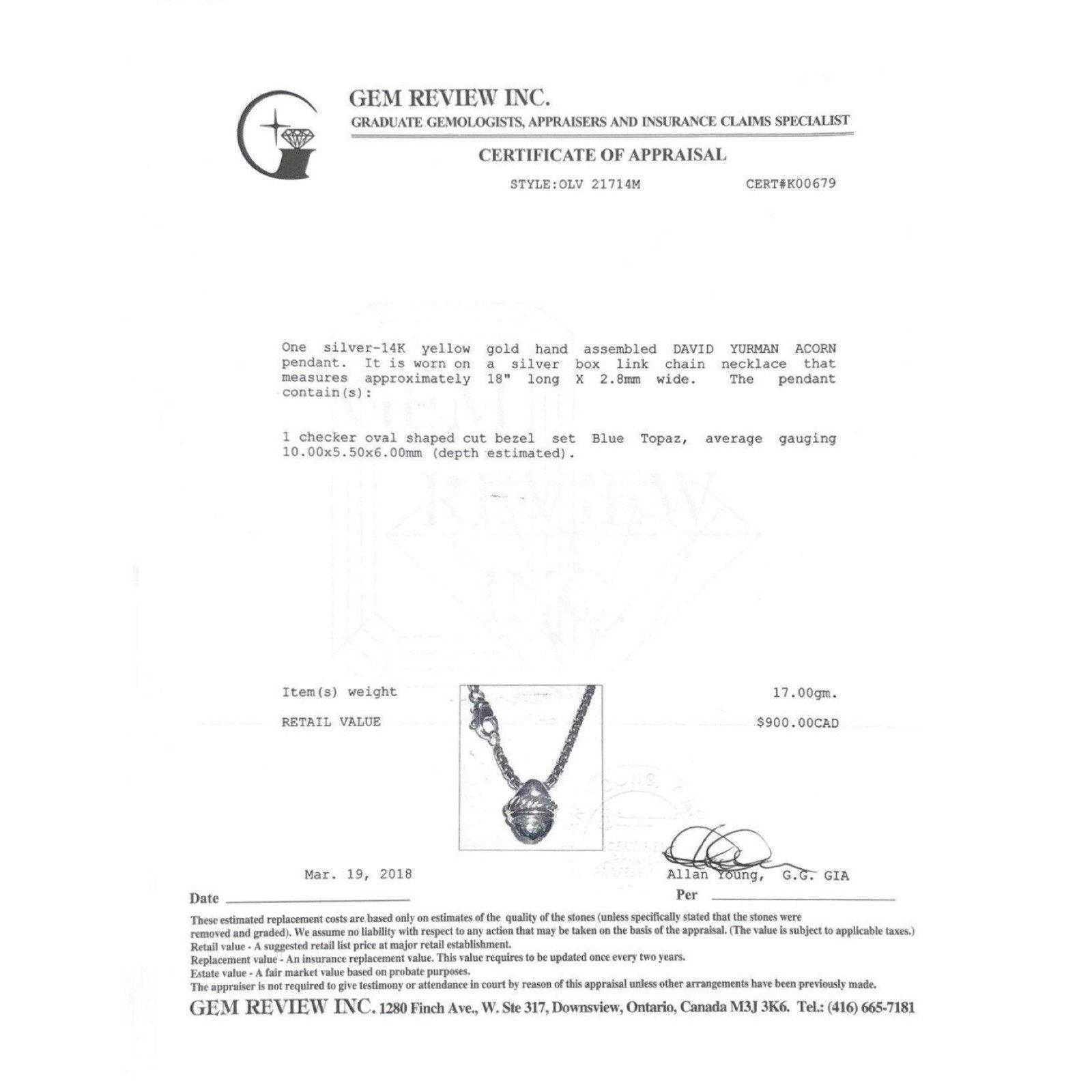 Blue Topaz Acorn Pendant in Sterling Silver-14 Karat Yellow Gold