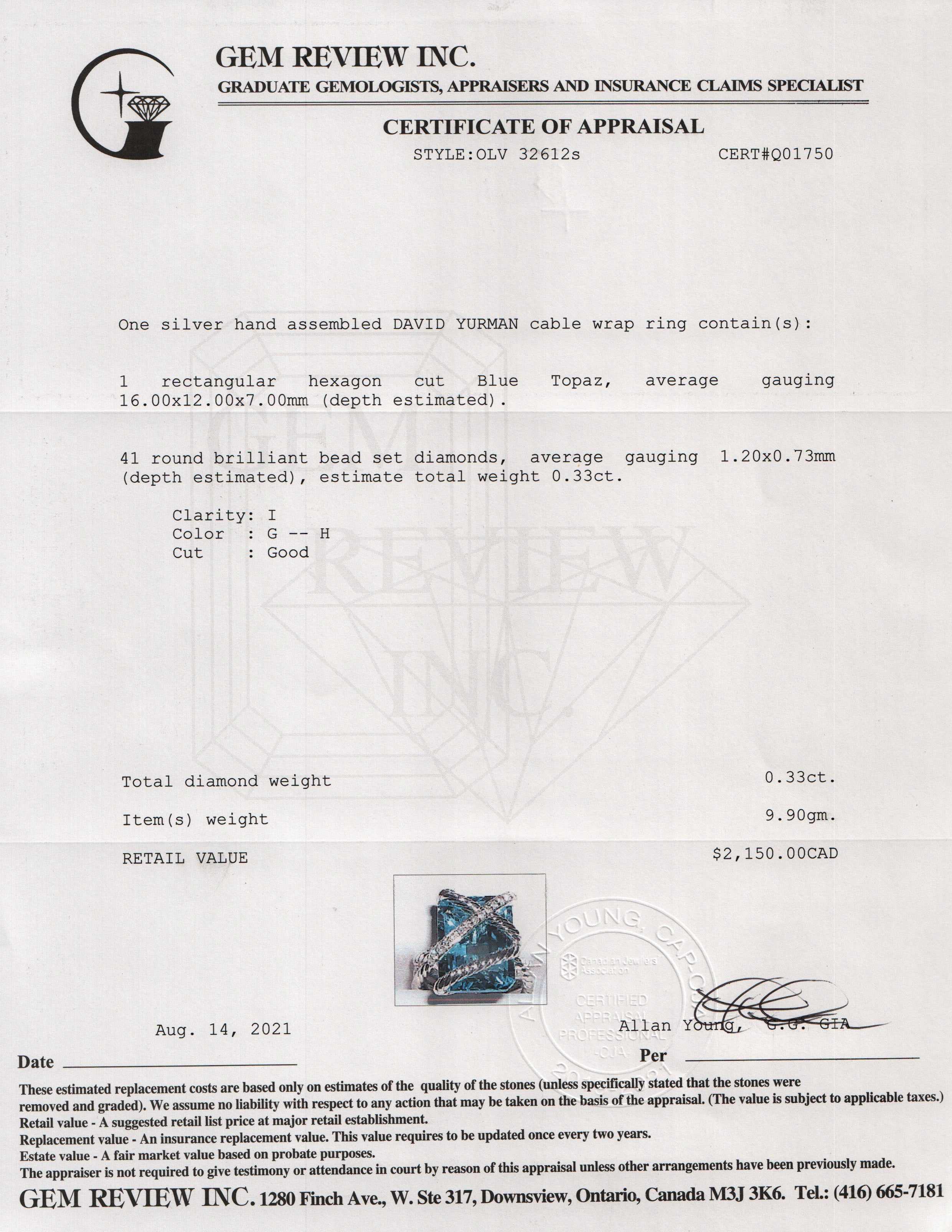 David Yurman Blue Topaz & Diamond Cable Wrap Ring
