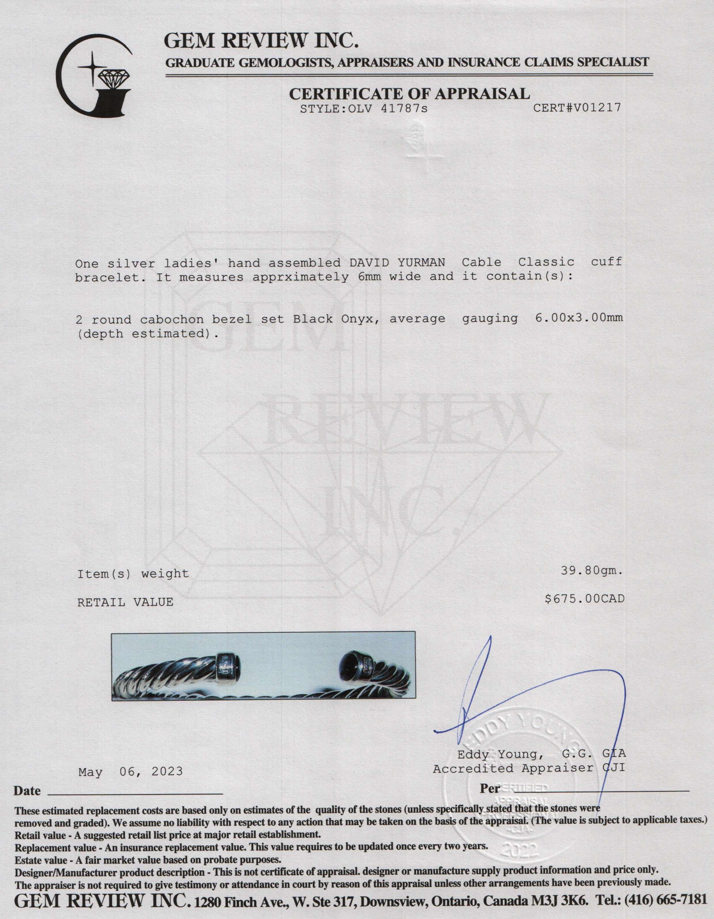 Included Items: Original David Yurman Pouch and Gem Review Appraisal