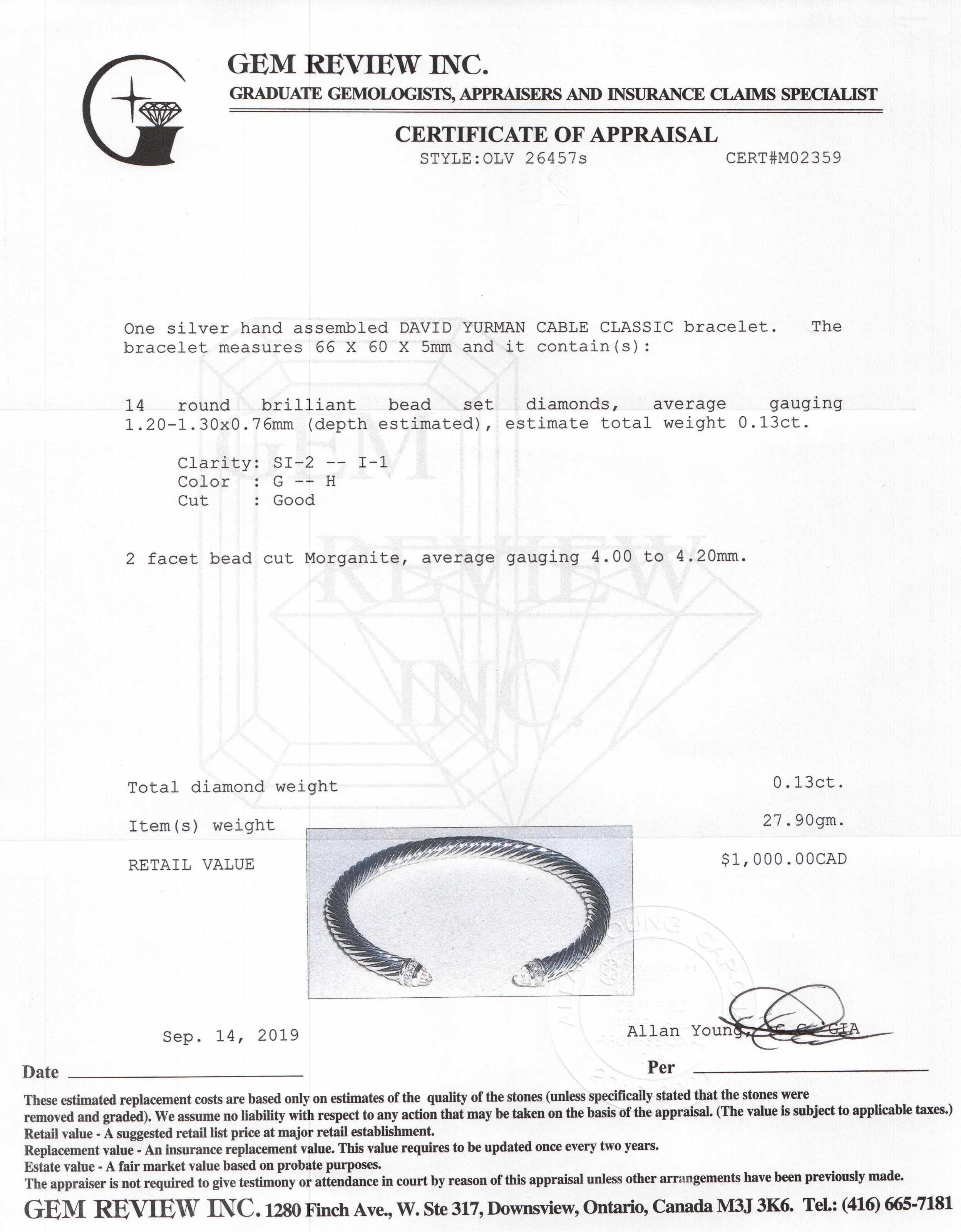 David Yurman Cable Classics Bracelet with Morganite and Diamonds