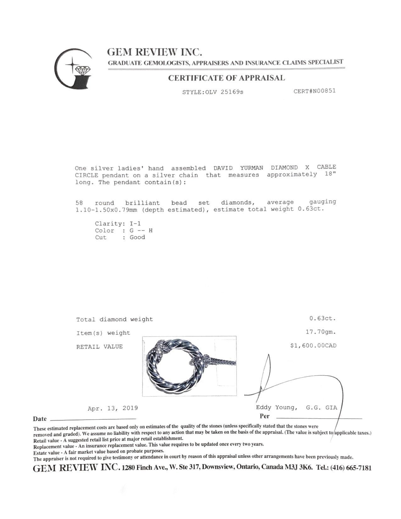 David Yurman Cable Starlight Diamond X Circle Pendant Necklace