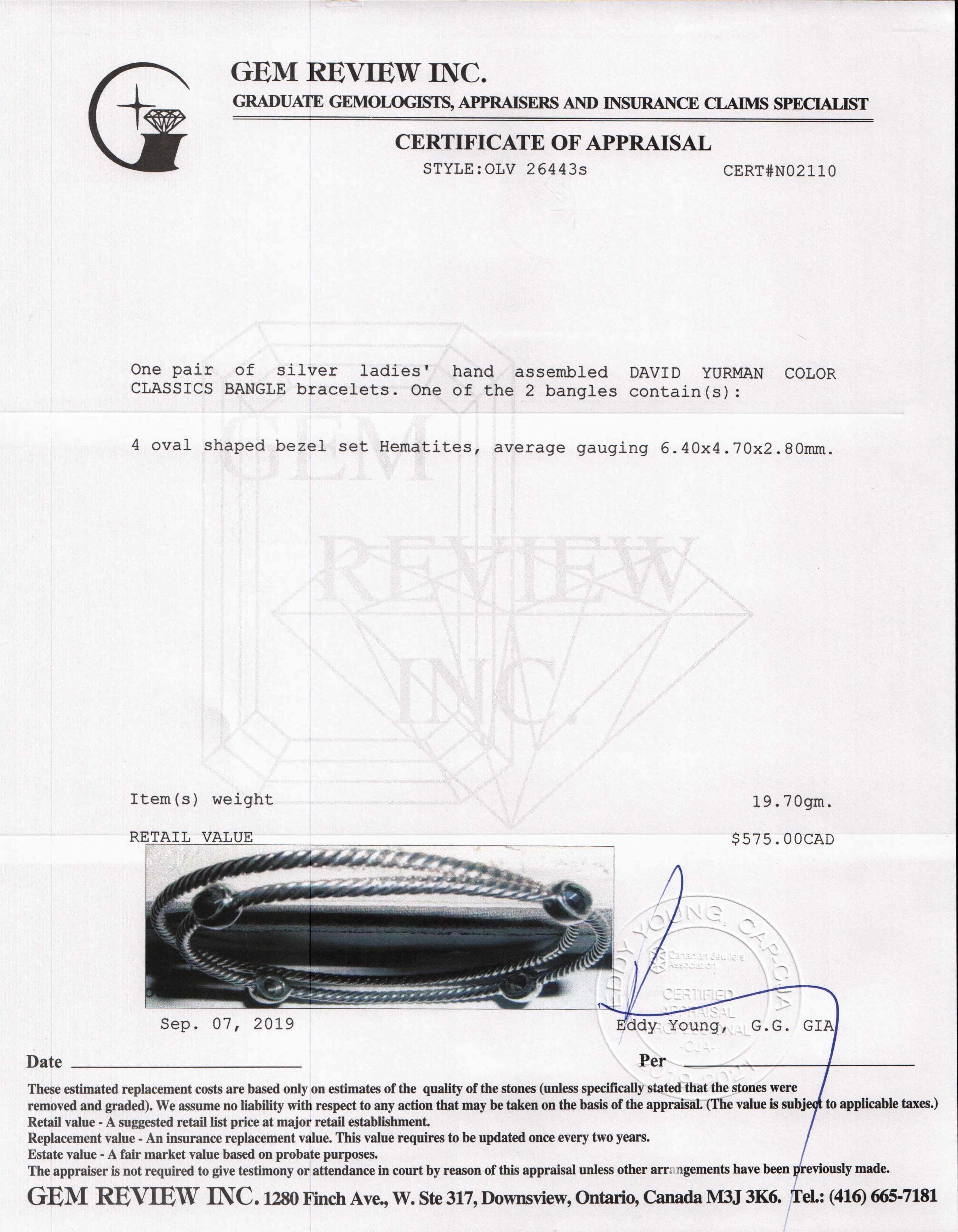 - Signature/Hallmarks: D.Y. 925 750
