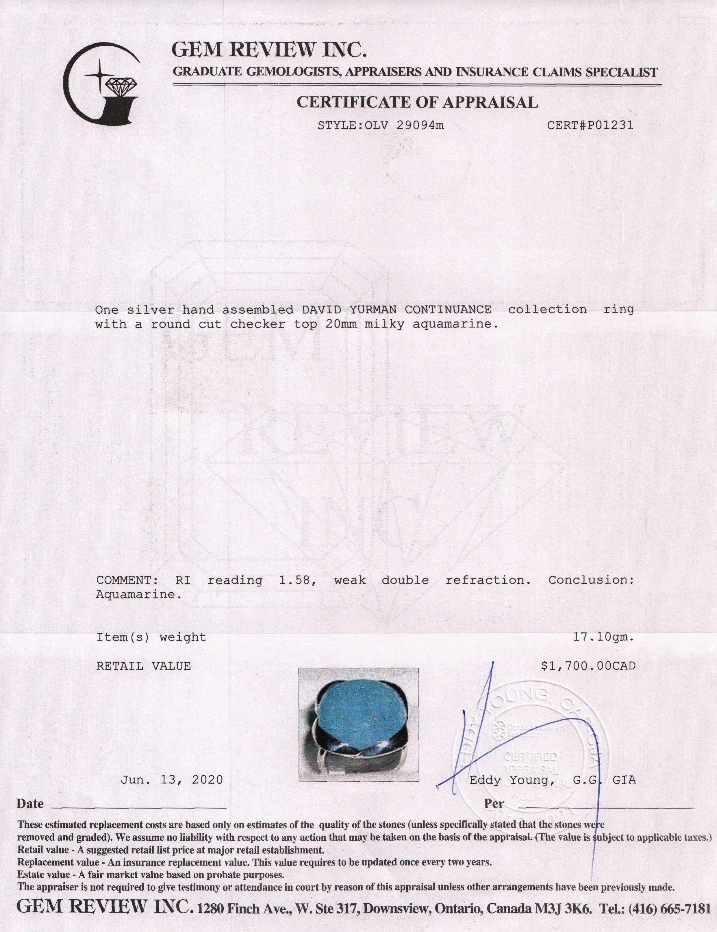 David Yurman Continuance Cocktail Ring with Milky Aquamarine