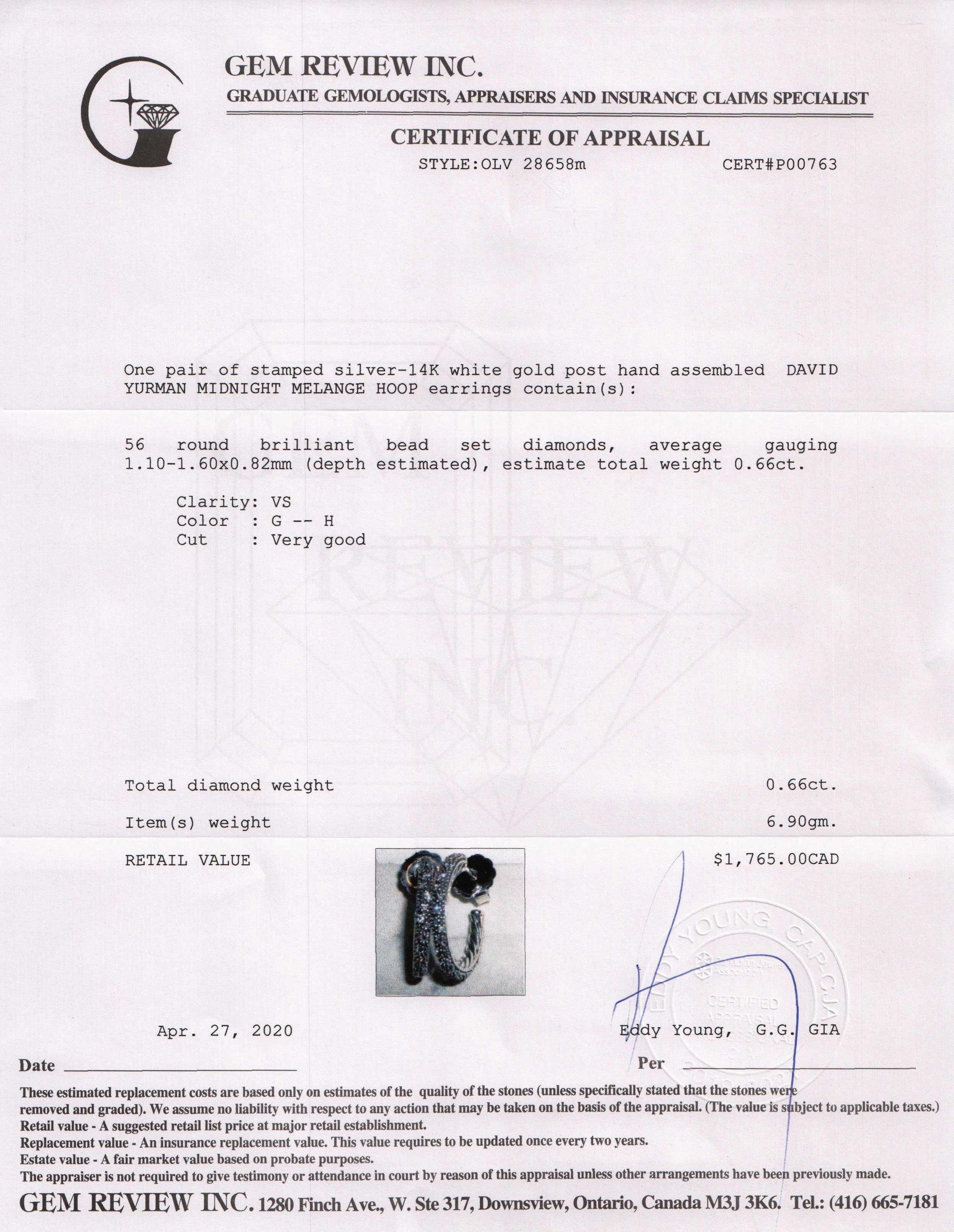 David Yurman Diamond Midnight Melange Hoop Earrings