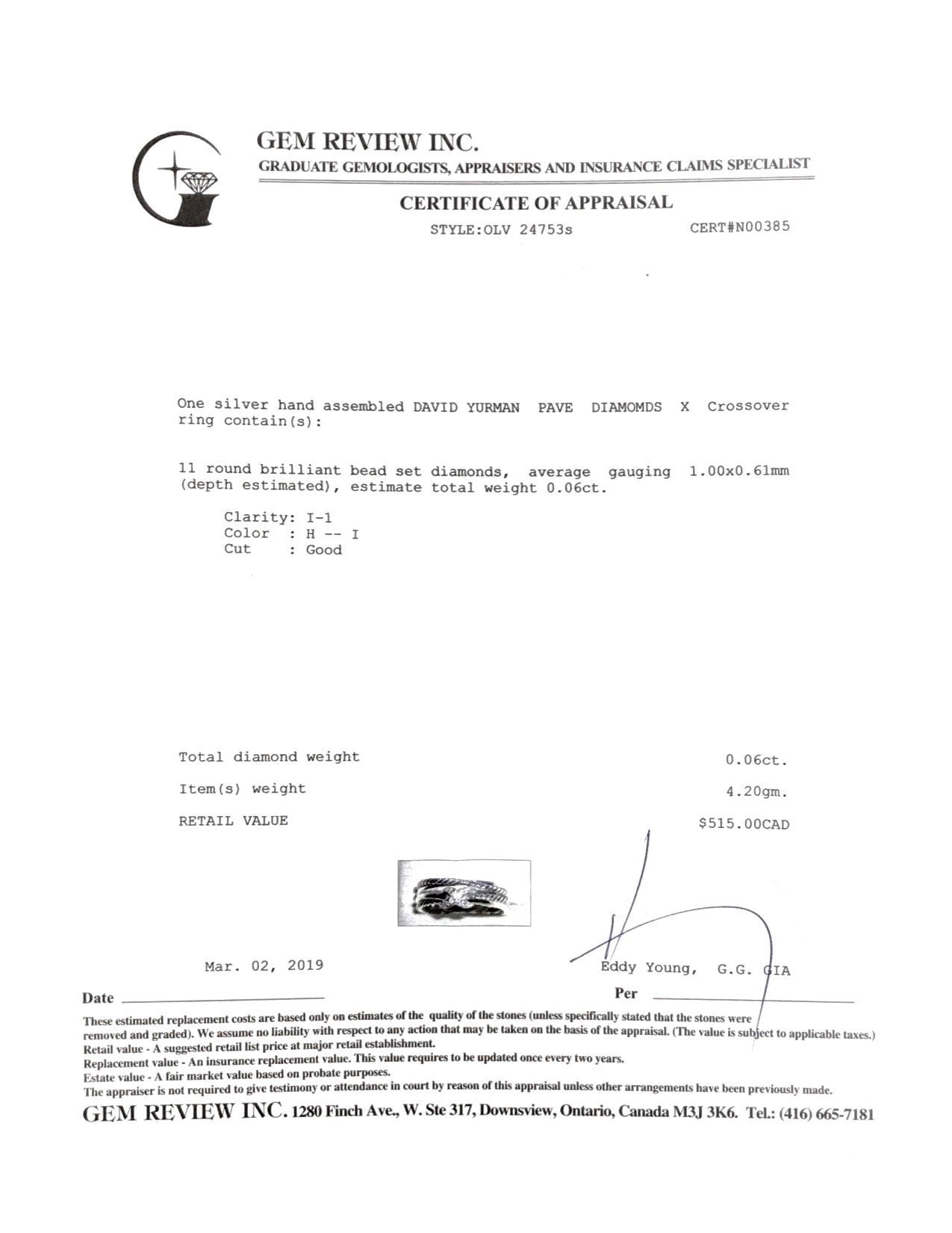 Included Items: David Yurman Receipt & Gem Review Appraisal
