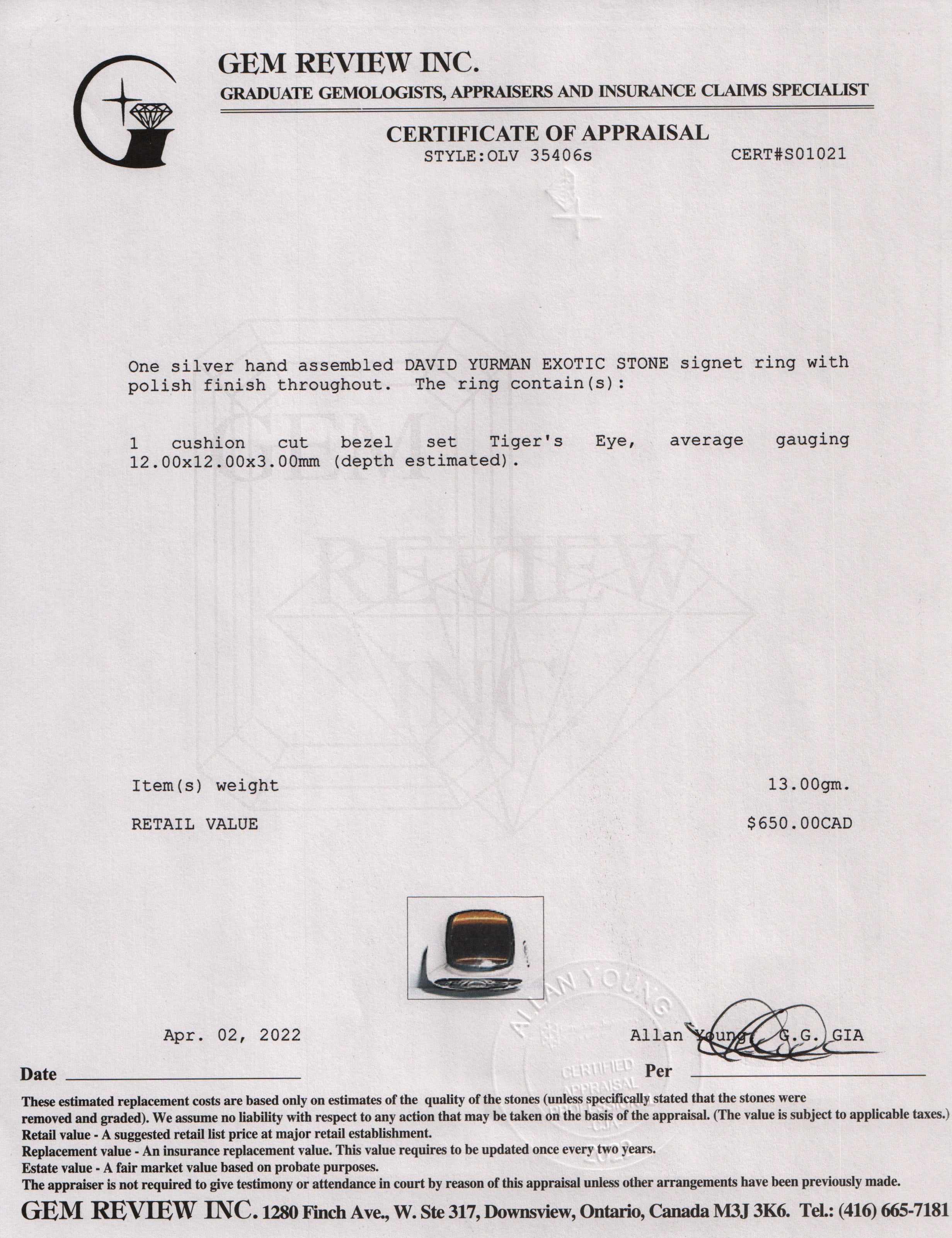 Included Items: Gem Review Appraisal