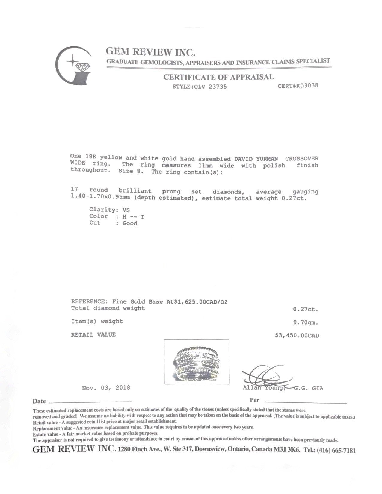 David Yurman Gold Crossover Wide Ring with Diamonds