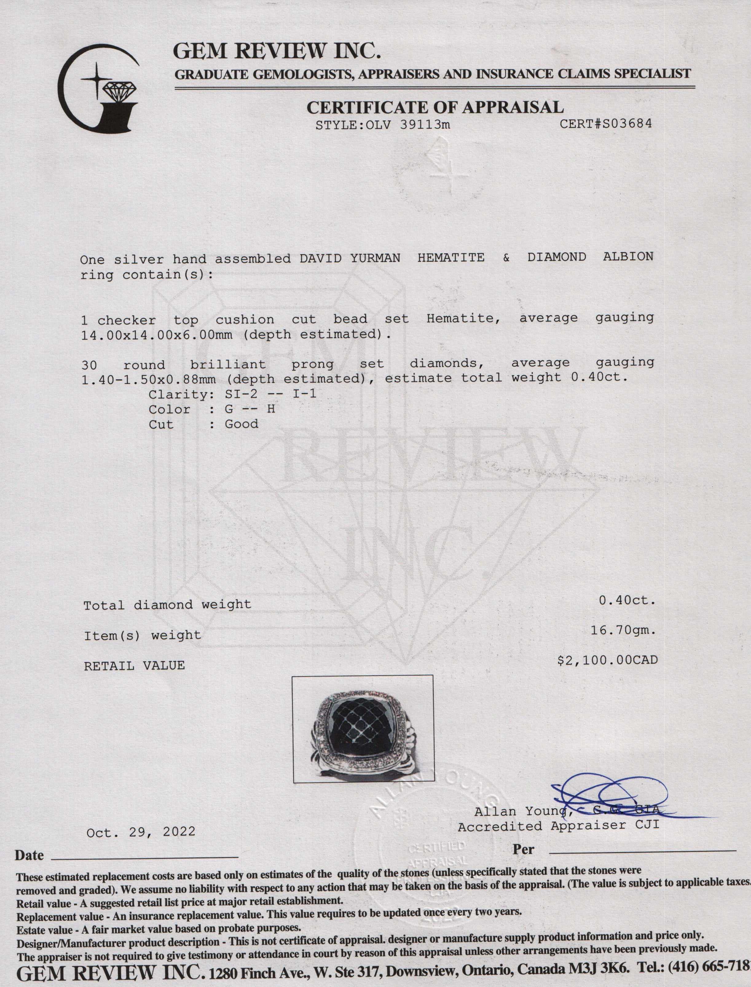 - 1 Cushion Cut Hematite Approximately 14 mm x 14 mm