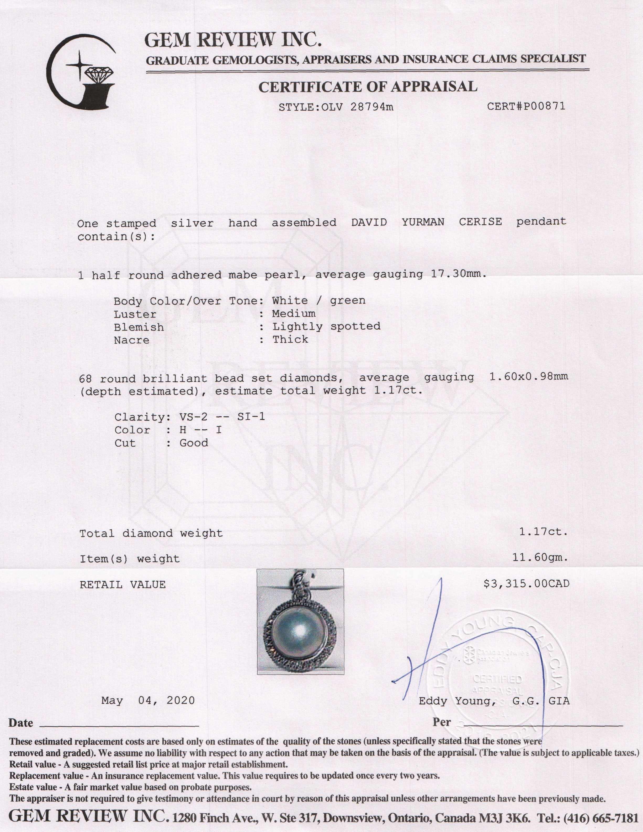 David Yurman Mabe Pearl & Diamond Cerise Enhancer Pendant